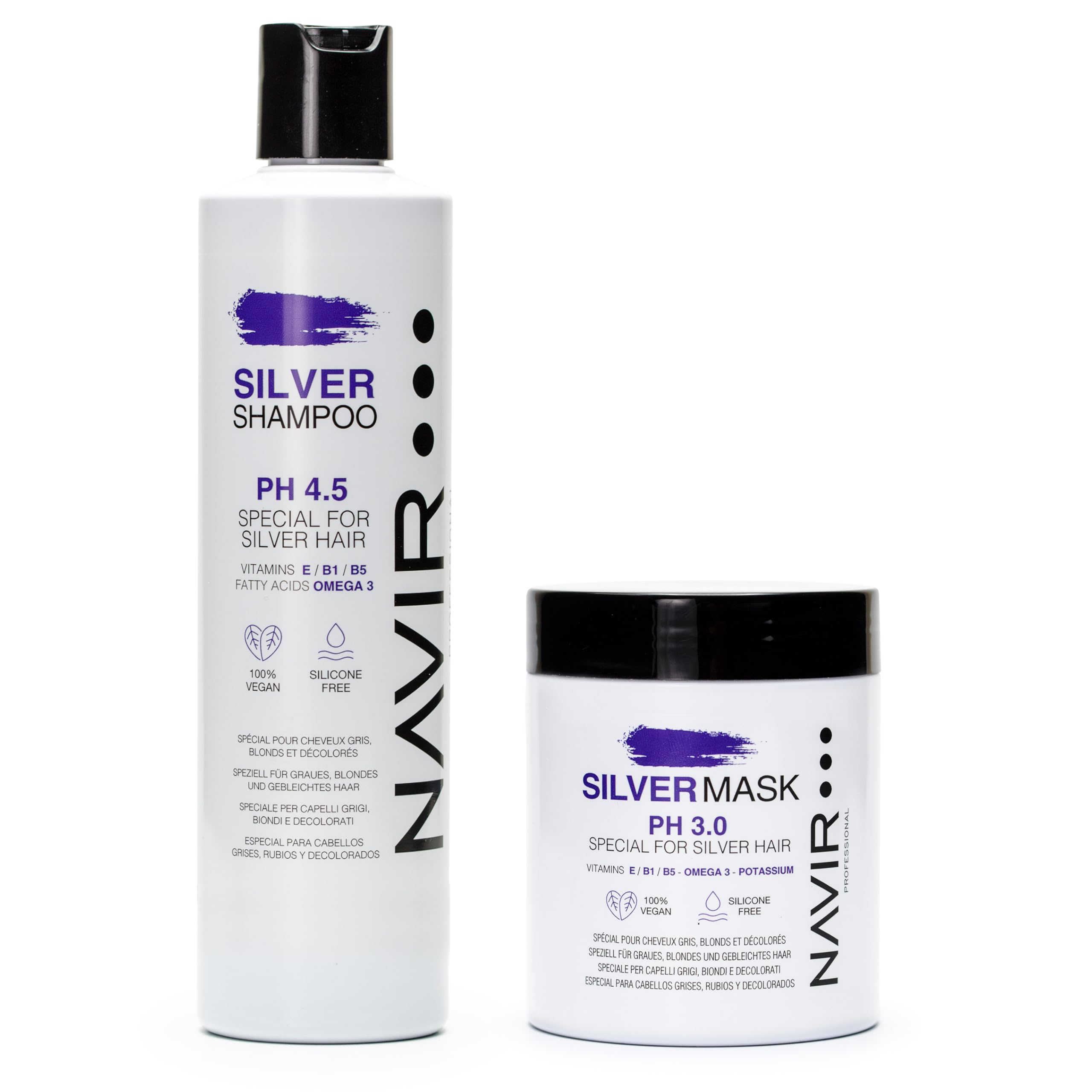 aa SAFETY WARNING aaaa.NAVIR Profesional Champú Morado y Mascarilla SILVER Matizador para cabellos grises, rubios y decolorados (Champú 300 ml Mascarilla 250 ml) aa VEILIGHEIDSWAARSCHUWING aaaa.