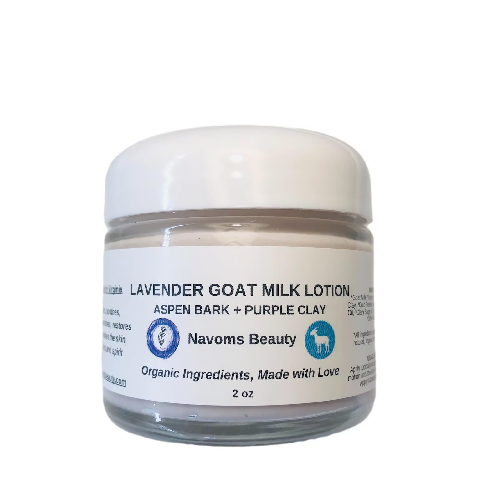 Navoms Beauty Organic Lavender Goat Milk Lotion with Brazilian Purple Clay + Aspen Bark | All Purpose Face & Body Lotion | All Ages and Skin Types (2 oz)