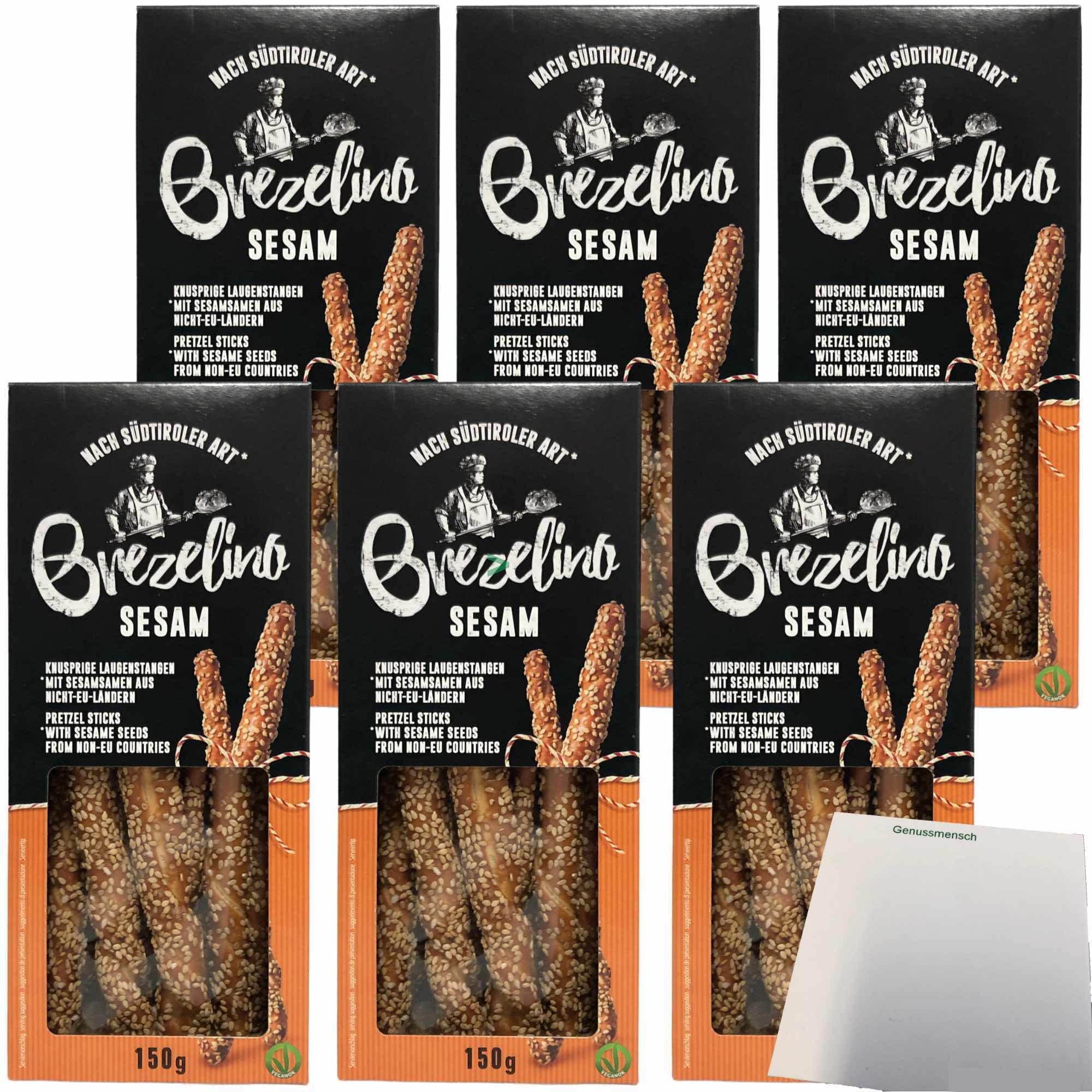 Nawarra Brezelino Sesam Knusprige Laugenstangen mit Sesamsamen 6er Pack (6x150g Packung) + usy Block