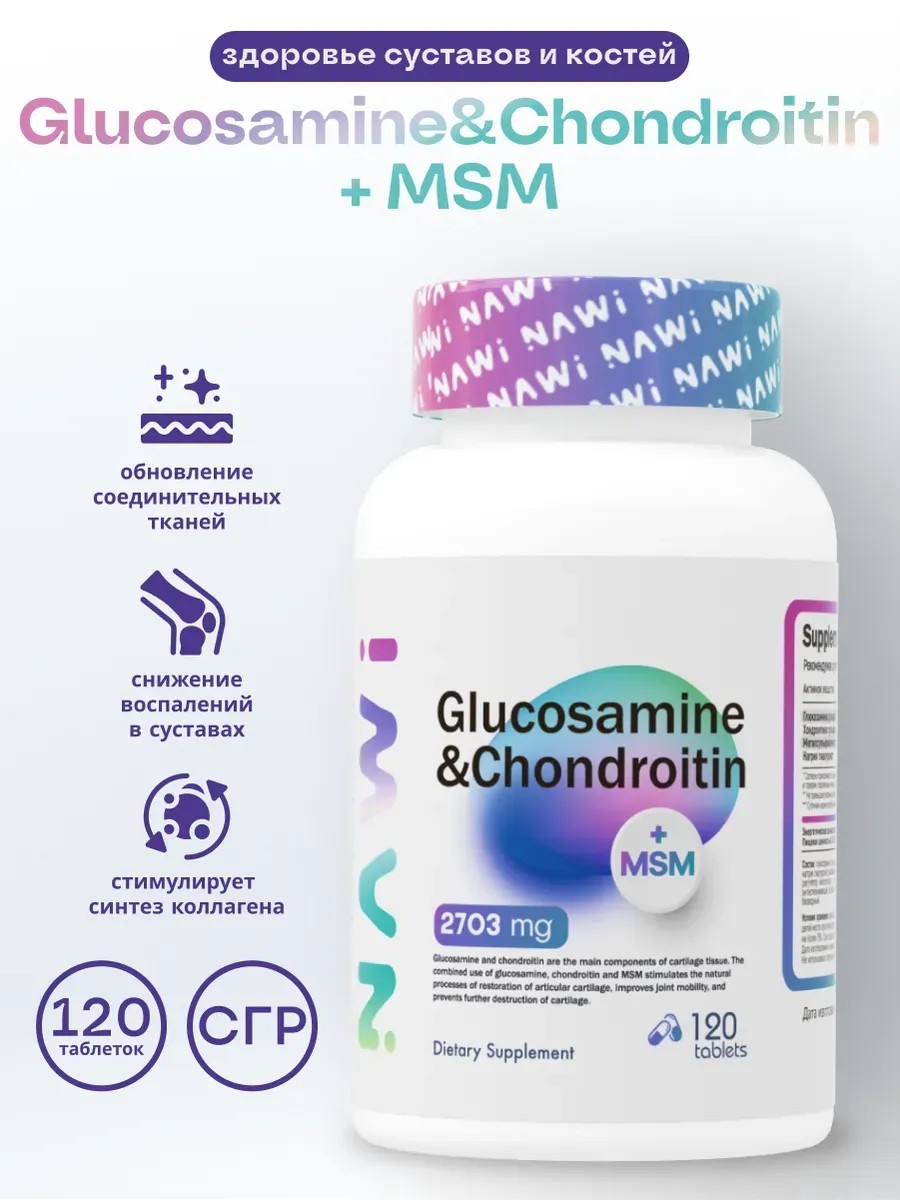 NAWI Glucosamine & Chondroitin + MSM 2703 mg 120 tabs is a comprehensive chondroprotector for the protection of ligaments, tendons, cartilage, and joints.