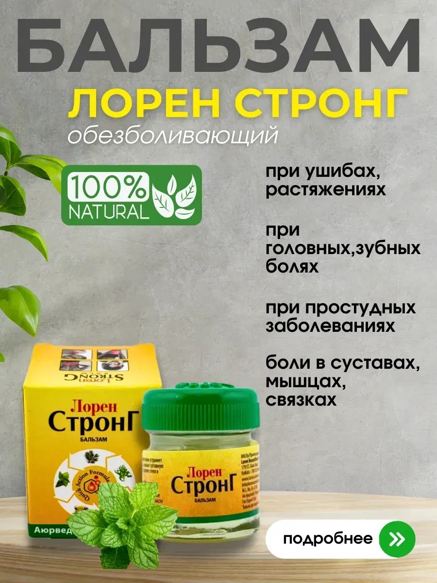 | Комплектация | Бальзам от боли Лорен Стронг 1 шт; Лечебный бальзам от болей; Мазь с натуральными ингредиентами; Мазь от растяжений и травм; обезболивающее средство; лечебная мазь для суставов; Крем от болей в спине; Мазь для снятия болей в мышцах |