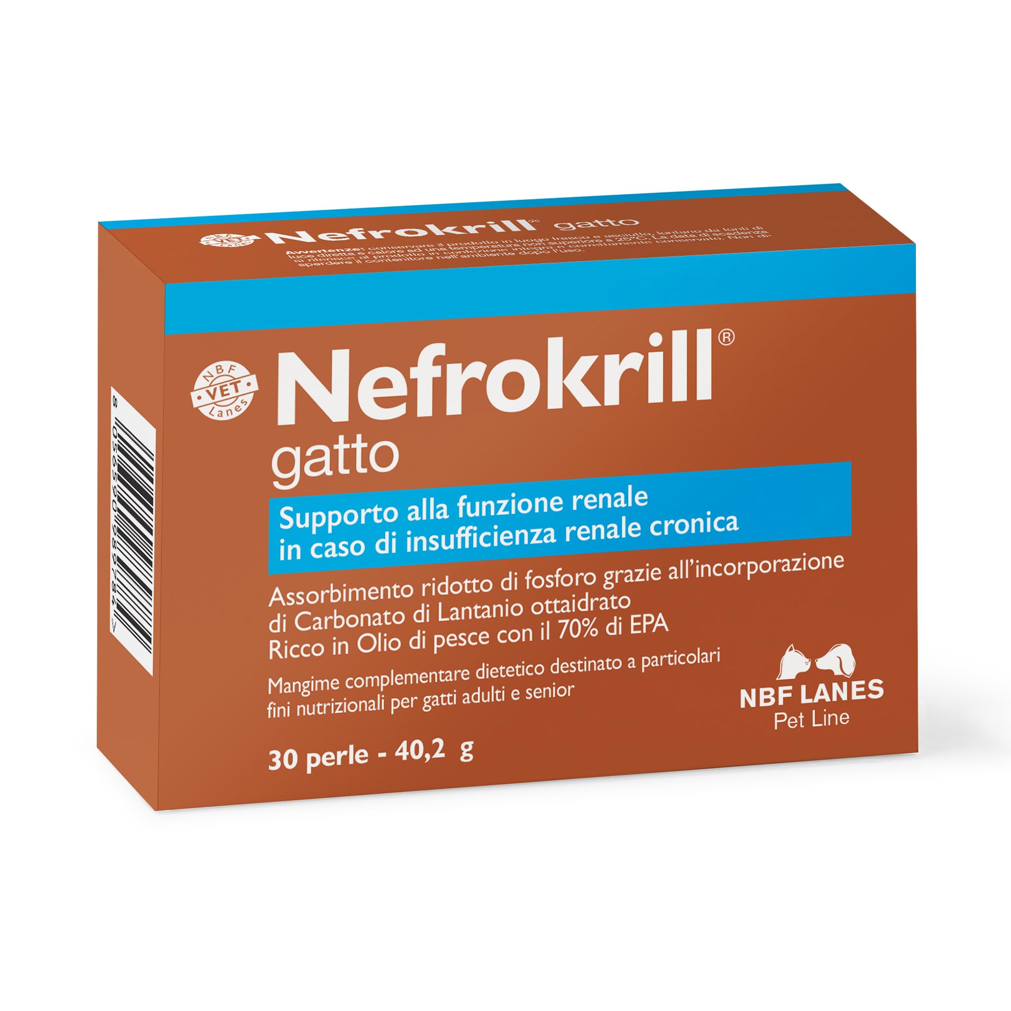 Nutritional principles of Nefrokrill, dietary complementary food, are important adjuvants, in adult dogs and cats, to support renal function in chronic renal failure also accompanied by proteinuria, hyperphosphatemia and hypokalemia. Ingredients Fish oil 70 Epa 10 Dha 26.1 , Bovine gelatin 21.2 , Potassium salt of citric acid Potassium citrate, Krill oil, Glycerol, Sorbitol, Beekeeping by-products Beeswax. Additives: nutritional additives: vitamins: 3A700 vitamin E 14.925 mg kg Other zootechnical additives: 4D1 lanthanum carbonate octahydrate 208.955 mg kg Organoleptic additives: Flavoring compounds: 2B17003 L Arginine Cas N 74 79 3 Flavis N 17.003 11.194 mg kg Technological additives: 1C322I Lecithin Instructions for use and daily ration Administer the product orally directly into the mouth or in addition to complete food, initially up to 6 months, for cats: 1 pearl per day. Dogs: 1 pearl per day per 10 kg of live weight up to a maximum of 3 pearls per day. Supplement the daily ration with the usual food. A balanced daily intake is recommended. Water is recommended at will. Always leave fresh water available. It is recommended to seek advice from a veterinarian before use or before extending the period of use. If the diet is recommended for temporary renal failure, the recommended period of use is between 2 and 4 weeks.Product Type: Pet Food Supplement. Brand: Nbf Lanes. Nbf Lanes Nefrokrill - 30 Appetizing Pearls for Kidney and Chronic Function for Adult and Senior Dogs and Cats. Principes nutritionnels du Nefrokrill, aliment complémentaire diététique, sont des adjuvants importants, chez les chiens et les chats adultes, pour soutenir la fonction rénale dans l'insuffisance rénale chronique accompagnée également de protéinurie, d'hyperphosphatémie et d'hypokaliémie. Ingrédients Huile de poisson 70 Epa 10 Dha 26,1 , Gélatine bovine 21,2 , Sel de potassium d'acide citrique Citrate de potassium, Huile de krill, Glycérol, Sorbitol, Sous-produits de l'apiculture Cire d'abeille. Additifs : additifs nutritionnels : vitamines : 3A700 vitamine E 14,925 mg kg Autres additifs zootechniques : 4D1 carbonate de lanthane octahydraté 208,955 mg kg Additifs organoleptiques : Composés aromatisants : 2B17003 L Arginine Cas N 74 79 3 Flavis N 17.003 11,194 mg kg Additifs technologiques : 1C322I Lecithine Instructions d'utilisation et ration journalière Administrer le produit par voie orale directement dans la bouche ou en complément de l'aliment complet, initialement jusqu'à 6 mois, pour chats : 1 perle par jour. Chiens : 1 perle par jour pour 10 kg de poids vif jusqu'à un maximum de 3 perles par jour. Complétez la ration quotidienne avec la nourriture habituelle. Un apport quotidien équilibré est recommandé. L'eau est recommandée à volonté. Laisser toujours à disposition de l'eau douce. Il est recommandé de demander conseil à un vétérinaire avant utilisation ou avant de prolonger la période d'utilisation. Si l'alimentation est recommandée pour l'insuffisance rénale temporaire, la période d'utilisation recommandée est comprise entre 2 et 4 semaines.Type de produit : complément alimentaire pour animaux. Marque : Nbf Lanes. Nbf Lanes Nefrokrill - 30 perles appétissables pour la fonction rénale et chronique pour chiens et chats adultes et âgés.