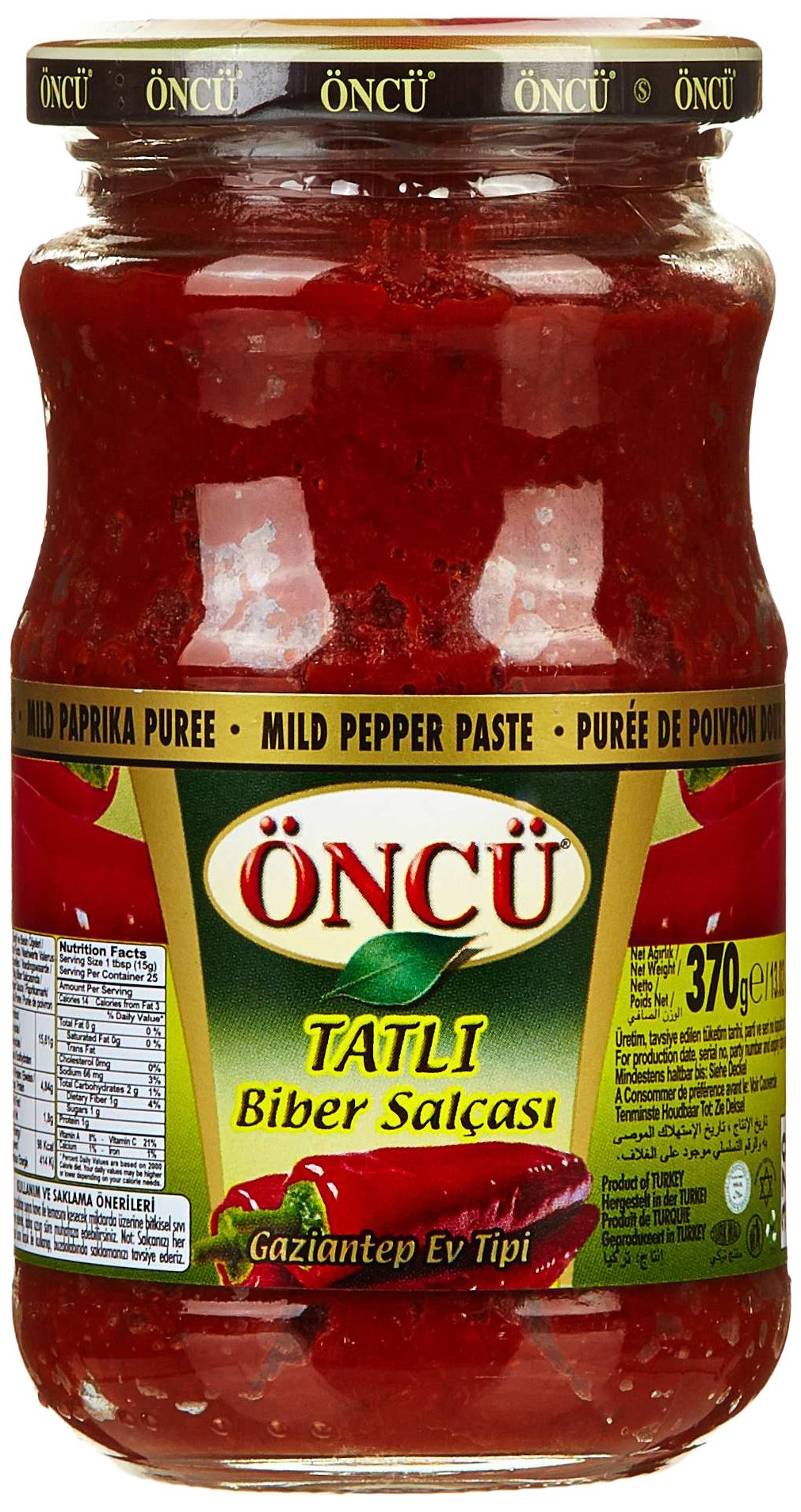 Sweet Chili Puree 370 ml Ingredients Xstore in a cool, dry place. Net weight 370g. Sweet pepper puree.Description du produit Purée de piment doux 370 ml Ingrédients XConserver dans un endroit frais et sec. Poids net 370 g. Purée de poivrons doux.Öncü Purée de Poivron Doux - Lot de 4