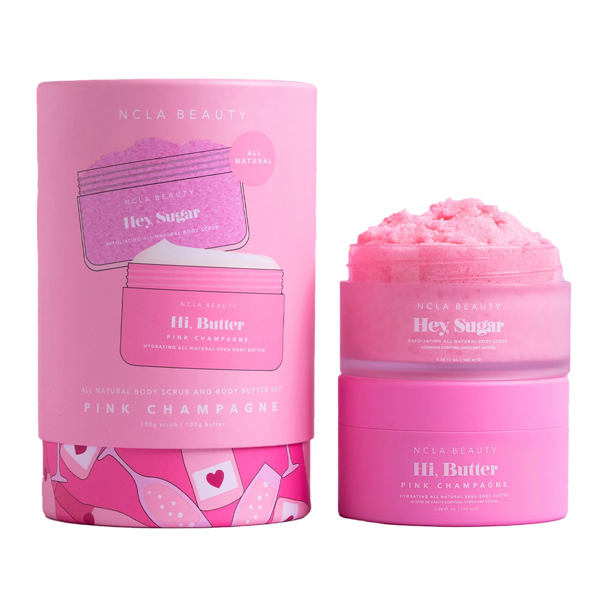 NCLA Beauty All Natural Body Scrub and Body Butter - Exfoliating Sugar Scrub and Moisturizer with Natural Butters and Oils - Pink Champagne - 2 pc