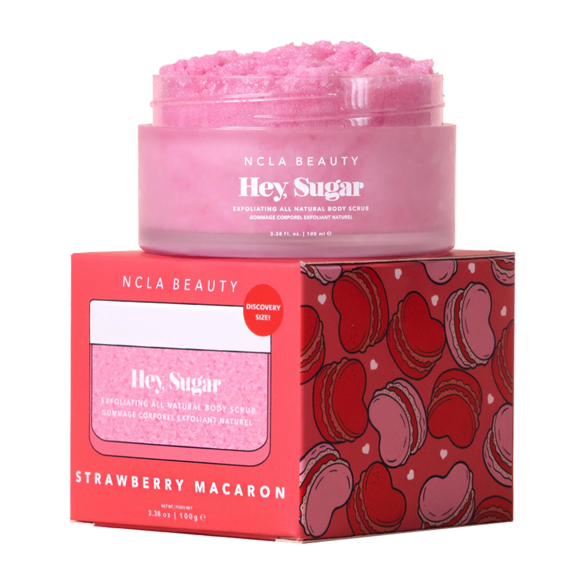 NCLA Beauty Hey Sugar All Natural Body Scrub - Moisturizing Exfoliating Sugar Scrub - Notes of Peonies Jasmine Amber - Strawberry Macaron - 3.4 oz