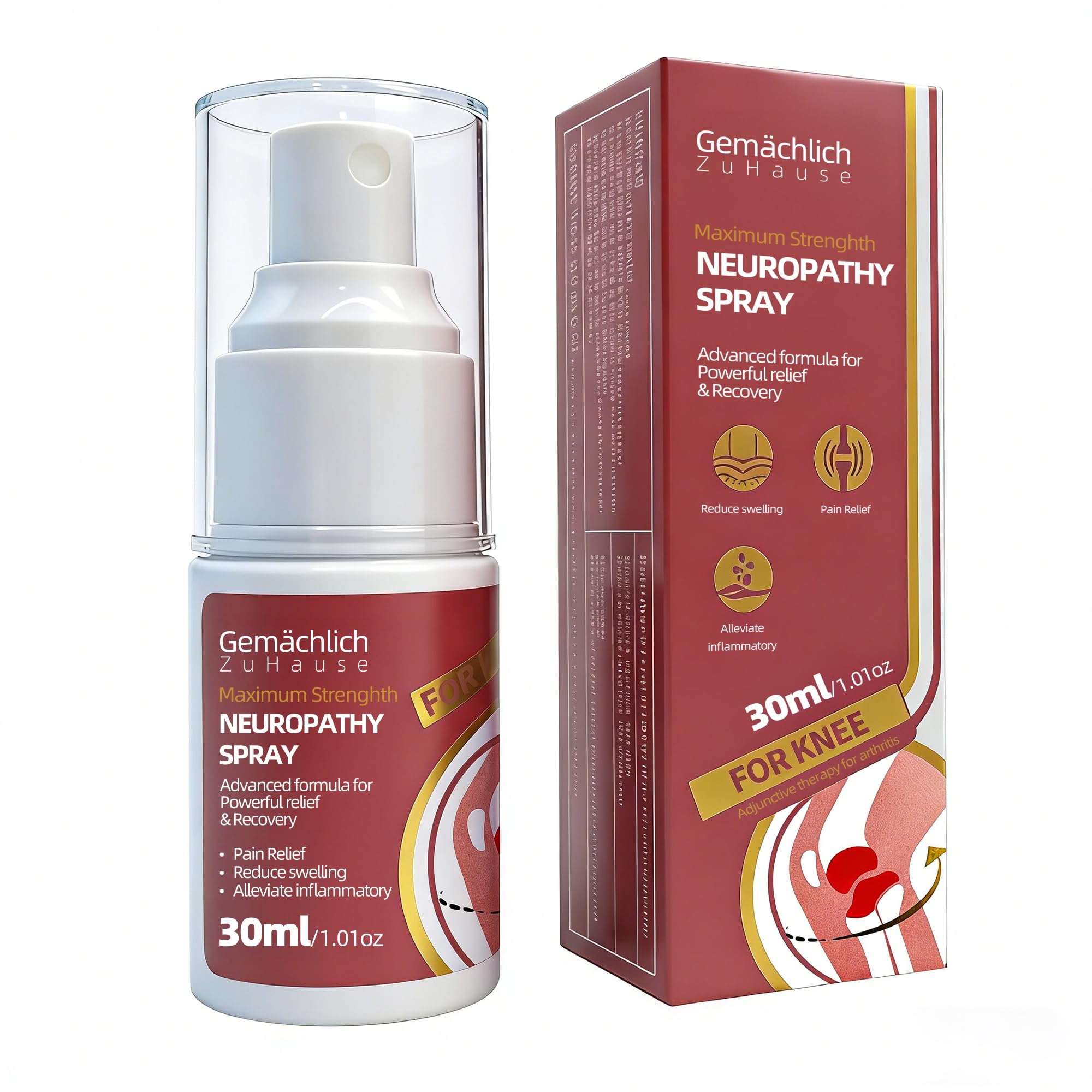 FDA LISTED FOR YOUR SAFETY (NDC 76986-014) – Choose a knee pain solution that meets US standards. Our formula is NDC Registered, guaranteeing you receive a consistent, high-quality product for managing joint pain and stiffness. ATHLETE FRIENDLY – Fast-drying formula allows immediate use of compression sleeves or braces. Perfect for pre-run warm-up or post-workout recovery. 360 JOINT COVERAGE – Fine mist wraps around the entire knee, easily treating the kneecap, sides, and the sensitive back-of-knee area without messy rubbing. WARMING CIRCULATION BOOST – Vanillyl Butyl Ether generates deep heat to improve blood flow to cold, stiff knees. Ideal for relieving weather-related aches. REDUCES "BONE ON BONE" SENSATION – High potency Arnica Montana reduces inflammation within the joint capsule. Helps lubricate the feeling of grinding knees during movement.