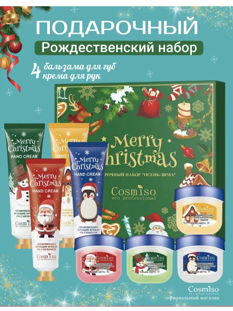 Зимний подарочный набор кремов для рук и бальзамой для губ - уход за кожей, который подстраивается под ваше настроение. В наборе 4 штуки увлажняющих кремов и 4 вазелина для губ, которые оставляют на коже нежные ароматы. Натуральная косметика содержит экологичные полезные компоненты. Подходит для губ и лица, рук и тела, делает кожу мягкой, бархатистой и дарит ощущение комфорта. Увлажняет клетки на 100%, успокаивает раздражения и избавляет от шелушений. Можно использовать в любое время года. В жаркий сезон крем станет эффективной защитой от сухости, а зимой сохранит кожу мягкой, несмотря на морозы. Вы заметите мгновенный результат с первого применения: кожа остается напитанной и красивой в течение всего дня. Используйте перед маникюром, чтобы размягчить кутикулу. Нанесите после мытья посуды и уборки, чтобы предотвратить возможное пагубное влияние моющих средств. Можно применять в качестве баттера для тела. Омолаживающее средство не оставляет липкости и жирной пленки. Имеет легкую текстуру и быстро впитывается. Успокаивающие крема подойдут для сухой, чувствительной и проблемной кожи. Применение. Нанесите антивозрастной крем для рук на чистую кожу и дождитесь полного впитывания. Удобный формат упаковки позволяет брать крем с собой, мини-тюбик помещается даже в маленькую сумочку. Качество продукции всегда остается на высоком уровне, а цена доступной. Набор в яркой упаковке станет шикарным подарком для женщин на 8 марта, Новый год, день рождения и другие праздники. Крема подойдут и для ухода за мужскими руками. Каждый будет рад качественному уходу с приятным ароматом.