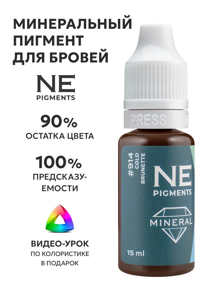 Минеральный пигмент для перманентного макияжа бровей от Елены Нечаевой (NE Pigments) №914 «Брюнет Холодный» — профессиональный неорганический пигмент прохладного нейтрального оттенка. Идеален для создания естественного перманентного макияжа, мягко сходит и минимизирует последствия ошибок при заглублении. Стабильный результат и предсказуемое заживление.