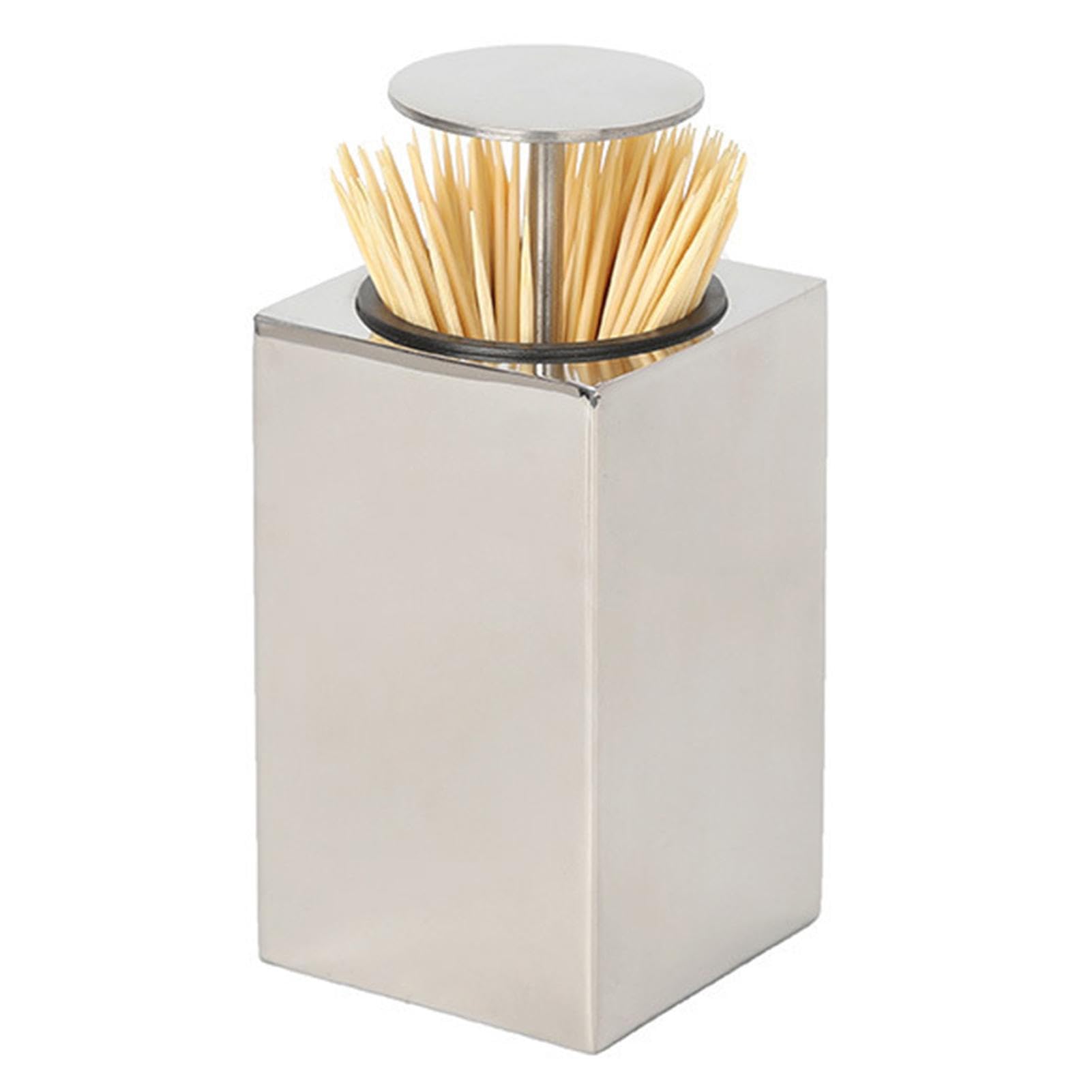? Nice gift: This toothpick holder will improve your culinary experience.It is a fantastic gift for everyone who appreciates elegant and useful products because it combines all of these properties.? Long lifespan: the smooth and easy -to -clean donor is made of robust stainless steel 304 and prevents it.This hygienic holder serves to close the toothpick and ensure that every toothpick remains clean.? A variety of possible uses: Our toothpick holder is designed so that your toothpicks or cotton swabs remain organized and easily accessible.Its sealed design prevents the ingress of dust and ensures cleanliness.Ideal for private households, restaurants, clubs and bars.? Save space: This toothpick holder is beautifully processed and gives your desk a touch of personal style.With its exquisite design, it easily fits into each facility and takes up little space.? Easy application: Enjoy the simple toothpick with our donor.The push button enables more hygienic and convenient use without having to touch toothpicks with your hands.