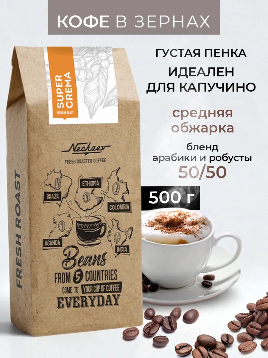 Кофе зерновой Nechaev Super Crema 500 г — итальянский баланс крепости и бархатистой пенки