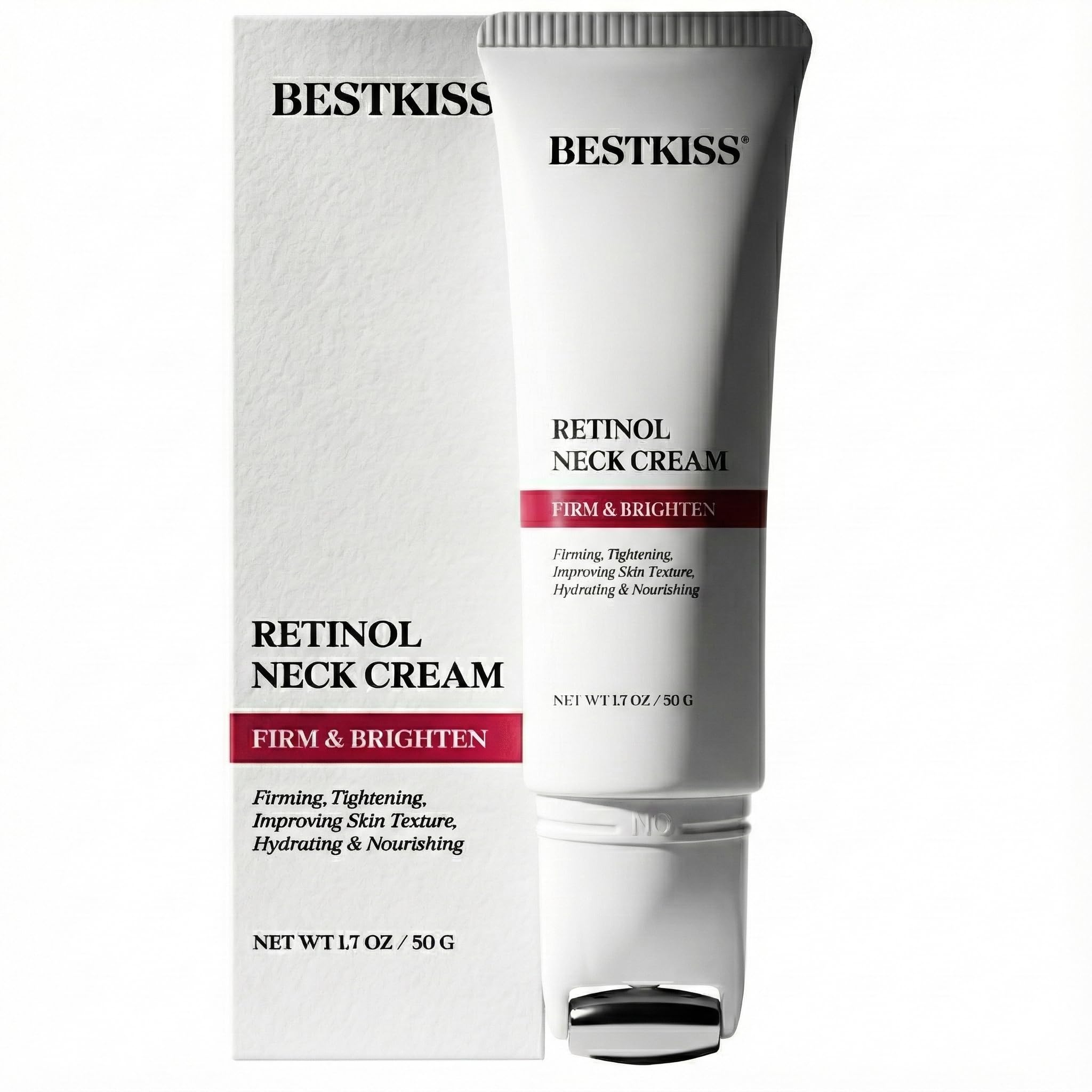 Satisfaction Guaranteed Policy: We stand behind every bottle of our neck tightening cream with a customer satisfaction guarantee. If you're not completely satisfied with the results, reach out to us for a hassle-free refund—no questions asked, no return required. Your happiness is our priority!. Easy to Use: Our innovative roller applicator eliminates messy hand application. Simply apply Bestkiss tighten and lift neck cream with an upward motion using the roller, gently massaging it into the neck and chest area until fully absorbed. For best results, use twice daily, morning and night, to maintain a firmer and smoother neckline. Powerhouse Ingredients: Retinol and Retinyl Palmitate work together to stimulate collagen production, smooth fine lines, and enhance skin elasticity, while Hyaluronic Acid deeply hydrates and plumps the skin. Niacinamide helps to even out skin tone and reduce the appearance of wrinkles. Natural plant extracts like Polygonum Bistorta Root and Bisabolol soothe and calm the skin, while Bifida Ferment Filtrate and Lactobacillus Soymilk Ferment Filtrate strengthen the skin barrier, leaving the neck area looking firmer, smoother, and more resilient. Visible Results in 4-8 Weeks: Besides instantly improving skin texture, most of our customers experienced a reduction in neck lines by 27.5 , neck line volume by 38.8 , enhanced firmness by 14.5 , enhanced skin tone by 12.5 and improved skin elasticity by 32.1 . Results may vary. Consistency and patience are key to achieving optimal outcomes. If you are not satisfied after 2 months of use, we will send you an additional bottle FOR FREE, along with a FULL REFUND. Introducing Bestkiss Neck Cream for Tightening and Firming: Formulated to target sagging skin, double chin, fine lines, and wrinkles on your neck and décolleté, our retinol neck firming cream will transform your skincare routine, leaving your skin looking firmer, lifted, and more youthful. With its innovative roller applicator, the neck tightening cream glides on smoothly and mess-free, while gently massaging the skin to boost absorption for a firmer, more lifted, and youthful neck. Give Your Skin the Best Kiss!.