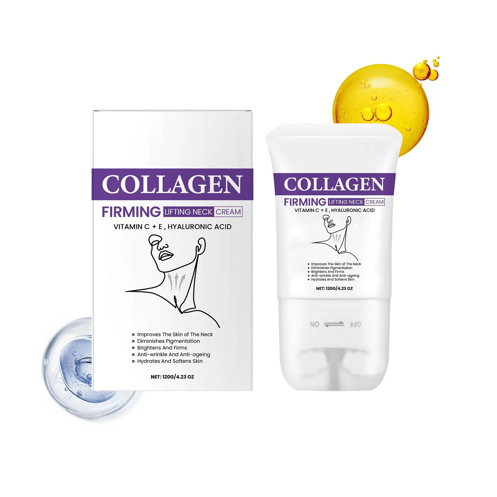 Neck Cream with Massage Roller – Firm Lift for Youthful-Looking Skin: Our Neck Cream with Roller is specially designed to target the delicate neck and décolleté area, helping to improve elasticity and promote a firmer, more sculpted appearance. The built-in 360 massage roller enhances absorption while providing a relaxing, comfortable experience at home. Neck Cream with Massage Roller's Key Benefits: ✓ Deep Hydration – Nourishes dry skin for a smoother, softer texture. ✓ Firming Lifting Effect – Helps reduce the look of fine lines and sagging for a more defined jawline. ✓ Roller Application – The roller glides effortlessly, boosting circulation and enhancing product absorption. ✓ Lightweight Fast-Absorbing – Non-greasy formula that layers well before makeup or skincare. How to Use: STEP 1: Cleanse and dry your skin. STEP 2: Squeeze out an appropriate amount of body lotion and apply evenly on your body using the roller that comes with this product. STEP 3: Massage gently until absorbed. Type: Neck Firming Cream Net: 120 g 4.23 oz Shelf life: 3 yearsLightweight, Fast-Absorbing Non-Greasy Formula Unlike heavy creams that leave residue, this neck treatment absorbs quickly without clogging pores or feeling sticky. The silky texture provides lasting comfort. Perfect for daily use under makeup or at night, it's a must-have for anyone seeking a smoother, firmer, and more youthful neck contour. Soothes Refines for a Radiant Glow Beyond firming, this cream leaves skin feeling silky and refreshed. The roller's massaging motion reduces tension while promoting a healthy glow. Ideal for daily use, it revitalizes dull skin, ensuring your neck looks as vibrant and cared-for as your face. Improves Skin Tightness Reduces Loose Skin Achieve a more toned and defined neck profile with this powerful firming cream. Its advanced formula supports skin's natural resilience,The roller provides a lifting effect, enhancing the cream's ability to promote a visibly smoother, tighter appearance.Regular use helps smooth out existing lines. Targets Wrinkles Fine Lines for a Youthful Look Specially formulated to address signs of aging, this cream works to diminish the appearance of wrinkles, creases, and fine lines around the neck and décolletage. The gentle massaging roller stimulates blood flow, encouraging collagen production for firmer, plumper skin. Deeply Hydrates Firms the Delicate Neck Area This neck cream delivers intense moisture to combat dryness, leaving your skin soft and supple. Enriched with nourishing ingredients, it helps improve elasticity and firmness, reducing the appearance of sagging skin for a more lifted, youthful contour. The built-in massage roller enhances absorption, ensuring deeper hydration.
