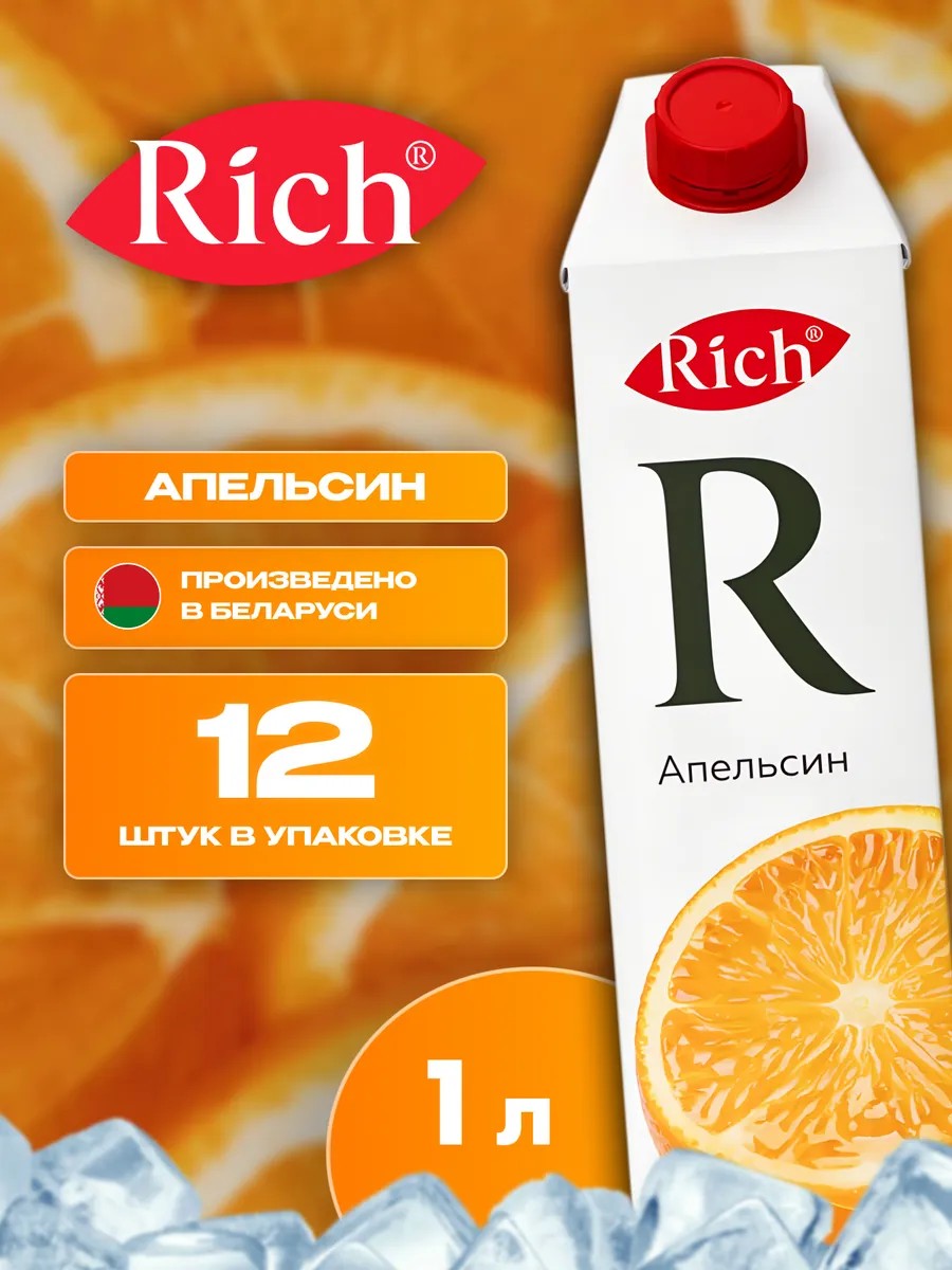 Rich Orange Nectar delivers a true vitamin boost and a vibrant flavor with every sip. Rich Orange is a refreshing non-alcoholic drink that offers a full vitamin boost and the rich flavor of ripe oranges. It's the perfect choice for those who want to enjoy naturalness and freshness. Belarusian food products contain no preservatives or artificial flavors. Wholesale cocktail set. Children's flavor for the littlest ones. For children. Boxed packaging. Concentrated orange juice from Belarus not only delights with its rich flavor but also fully satisfies your vitamin needs. Rich in vitamin C and other beneficial elements, it helps strengthen the immune system, increase energy levels, and support overall well-being. Made in Belarus.