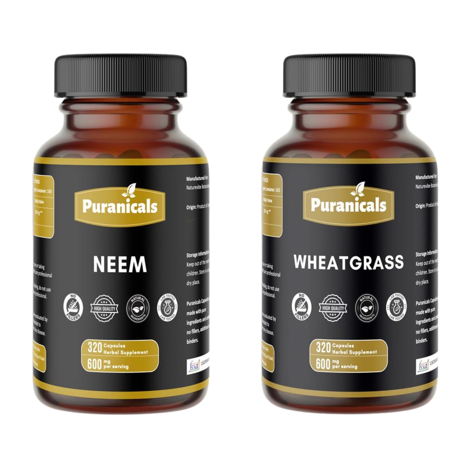 The recommended serving size is 2 capsules per day. Our Neem Capsules, which are made with 100 neem powder, contain 600mg per Serving, and Wheatgrass Capsules, which are made with 100 . Capsule format: Easy to include in your daily routine, whether at home or traveling. Two best-selling herbs, one bundle: Neem and Wheatgrass in separate bottles, so you can use each according to its schedule. Crafted from wheatgrass plant material with quality processing. Made from neem plant material, with a focus on quality.