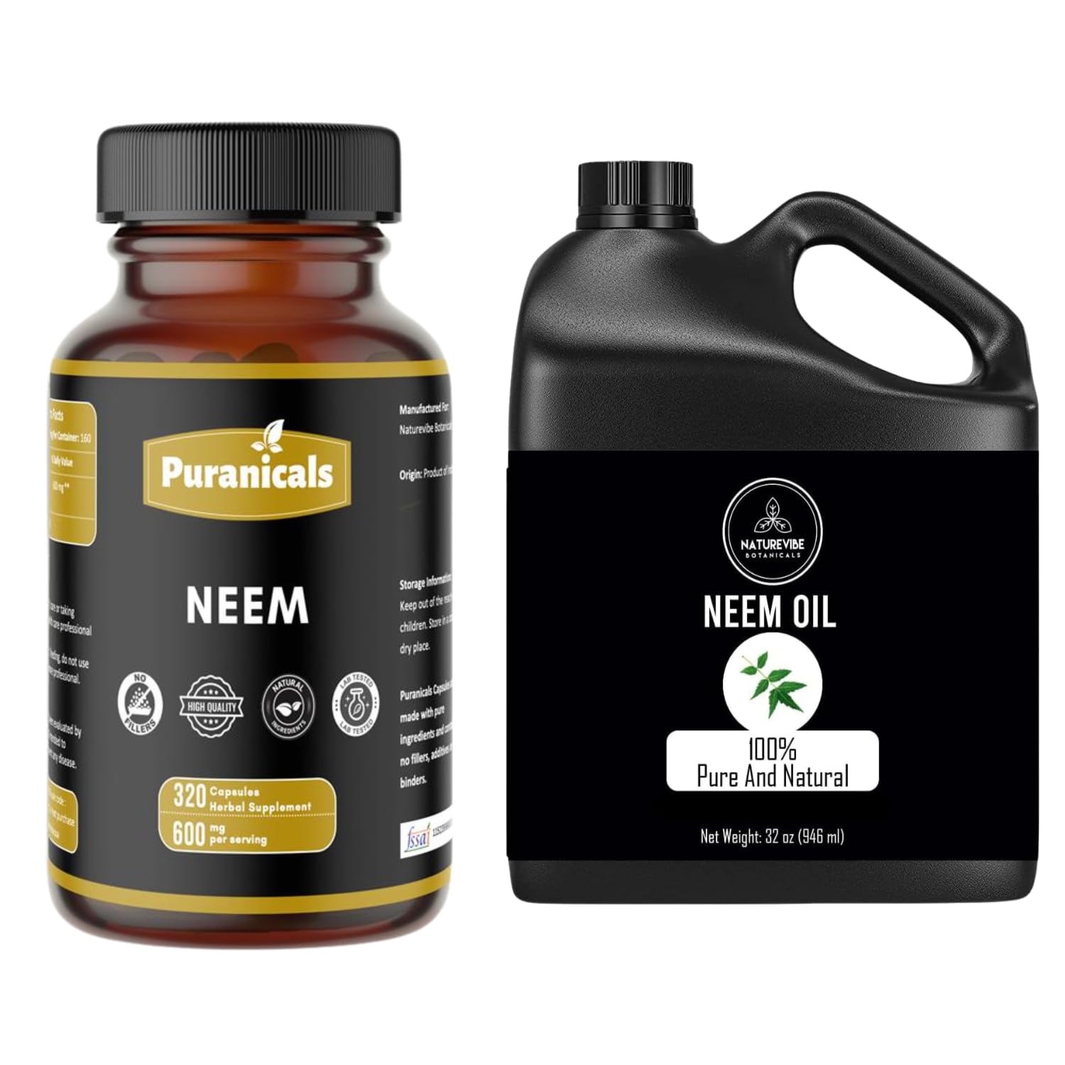 This Neem Capsules and Neem Oil bundle brings together two neem essentials in one convenient combo. The capsules provide a simple, single-ingredient format for daily use, while the oil offers a versatile liquid option. Both products are made with a clean label—no added artificial colors or flavors—and are packaged for ease of use. A practical two-bottle set that combines the flexibility of capsules with the utility of pure neem oil.