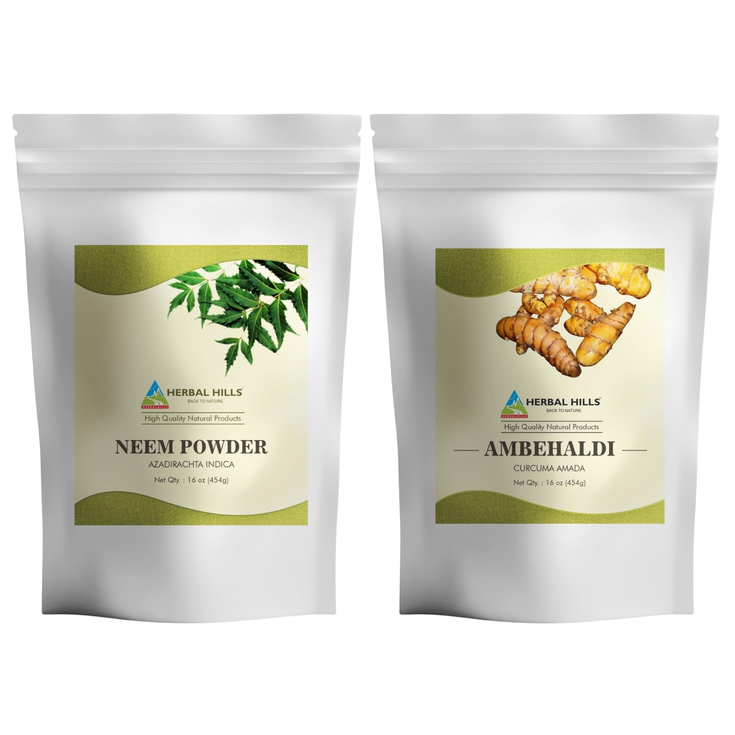 Neem Leaf Powder and Ambehaldi Turmeric Powder 16 Oz Pack of 2 Combo