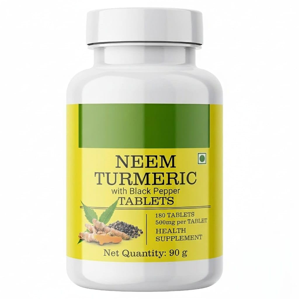 Neem Turmeric with Black Pepper 180 Tablets Made with Pure Turmeric Root Powder and Neem Leaf Powder Detox Tablet