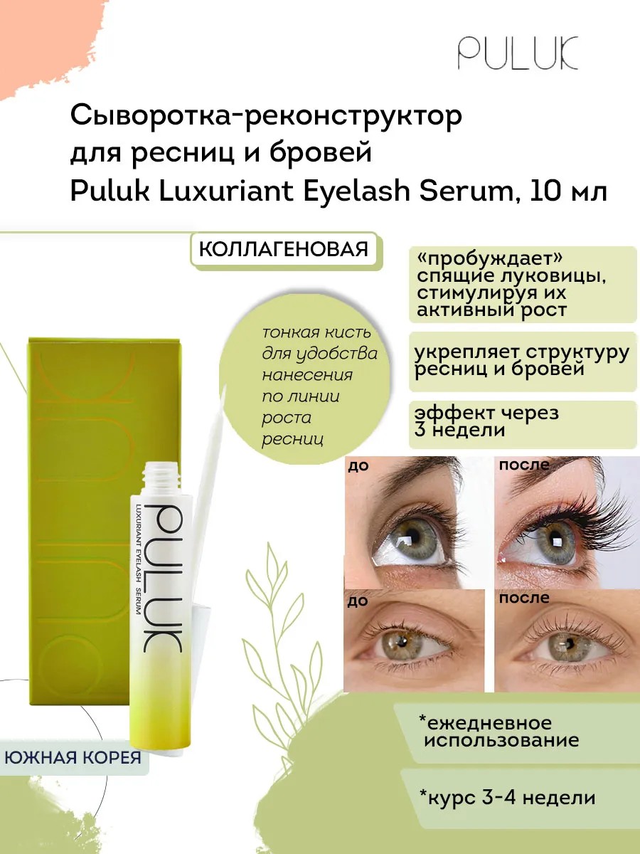 Официальный дистрибьютор PULUK в России. Гарантия подлинности! Предлагаем восстанавливающую сыворотку PULUK Luxuriant Eyelash Serum — профессиональную косметику для ресниц, созданную для интенсивного ухода и реконструкции ресниц и бровей. Этот активатор роста ресниц обеспечивает глубокое питание и защиту после травмирующих процедур, таких как наращивание, биозавивка и ламинирование.