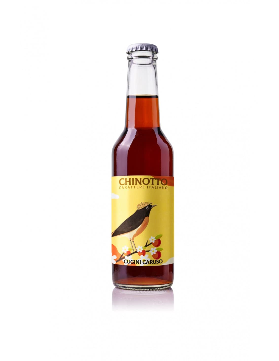 Cugini Caruso's Chinotto: The flavor that sets it apart from the rest of the world. A slightly bitter drink that we've naturally sweetened to create a sensation unlike any other. It reveals its personality with a hint of lemon. 275 ml glass bottle. Nutritional Information: Average nutritional values per 100 ml - Energy 46.40 kcal 197.2 kJ. Fat 0 g, of which saturates 0 g. Carbohydrate 11.6 g, of which sugars 11.6 g. Fiber 0 g. Protein 0 g. Salt 0 g.