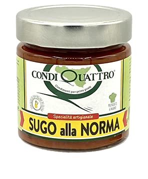 Sicilian artisanal ready-made Sugo Hand-prepared with extra virgin olive oil 200g Ingredients: Tomato puree 70 , Meanzane 20 , Extra virgin olive oil, sugar, salt, basil, garlic. Nutritional Declarations Average nutritional values per 100 g - Nutritional value for 100 gr - Average value per 100 gr - Durchschnittliche Nährwerte pro 100 g Energia - Ènergie - Energie - Energie - Energie - 118 kcal 495 kj Grassi - Fat - Fat - Fats - Fett6.9 g of which fatty acids - of which saturates - of which acids fats - davon gesättigte Fettsäuren 0.1 g Carbon - Carbohydrate - Carbohydrates - Kohlenhlydrate13.4 g of which sugars - of which sugars - of which sugars - davon Zucker0.8g Fiber - fibers - Fasern0.3 g Proteine - Protein - Proteines - Eiweiß0.4 g Sale - Salt - Sel - Salz0.3 g