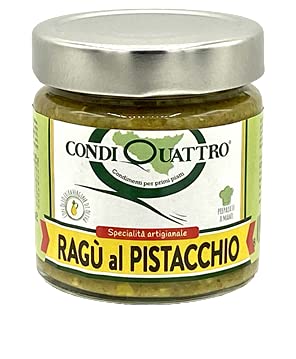 Sicilian Artisanal Ready-Made Sausage 200g Handcrafted with extra virgin olive oil pistachio kernels and many other sublime ingredients, all waiting to be discovered. How is it made? It's a large meat sauce, in white, so without tomatoes. It's our most complex sauce, both in its preparation and its taste. A warm yet very mild and well-rounded flavor. The classic base of onion, carrots, and sulfured sedanini in extra virgin olive oil, cooked slowly over low heat for the time necessary to release its sweet aroma. The pistachio kernels add delicacy and characterize the fragrance. The fresh pork is expertly prepared, minced in-house to order and roasted to perfection, without pre-ripening. Salted spinach and fresh potatoes make the sauce smooth and velvety. It's a very versatile ingredient and perfect for a multitude of preparations: simply added to dough, shortcrust or long, sculpted. Used to prepare baked pasta in a baking tray by adding just a little grain and coating it with pangratté. An excellent result for preparing very quick and delicious rice balls: the rice is mixed with stringless rice and shaped, placed in an oiled and pangratté-lined terrine, and finished with oiled grain. Bake for 10 minutes to crisp the outside, and it arrives at the table with great precision. Always surprising! Ingredients: pork, potatoes, whole milk, spinach, carrots, onions, extra virgin olive oil 8 , pistachios 6 , butter, white wine, sedan, salt, black pepper, cinnamon. Interesting fact: our pistachio ragù is an invention of our own, not found in traditional Sicilian cuisine. We launched it many years ago, but it was completely different then. We have made small and large modifications with each production run, and after years of satisfaction, we are finally very satisfied. Nutritional Information Average nutritional values per 100gRagou au Pistache Sicilien avec huile Evo de 200 g par Nelson SicilyDESCRIPTION DU PRODUIT Sugo prêt artisanal sicilien 200 g Préparation à la main avec huile extra vierge d'olive grain de pistache et de nombreux ingrédients sublimes tous à découvrir commoder comment est-ce ? : c'est une grande viande, en blanc donc sans tomate. C'est notre jus le plus complexe, que ce soit pour la préparation ou le goût. Un goût chaud mais très doux et rond. La base classique de l'oignon, des carottes et des sédans souffrés en huile extra vierge d'olive, à feu lent et pour le temps nécessaire pour libérer son odeur douce. Le pistache en graine apporte délicatesse et caractérise la fragrance. La viande de porc fraîche la fait de maîtrise, hachée chez nous au moment et rotsolée à la perfection, sans prémure. Les épines salées et pommes de terre fraîches rendent le complexe doux et velouté. C'est un condition très polyvalent et parfait pour une multitude de préparations : simplement ajouté à la pâte, courte ou longue peine sculptée. Utilisé pour préparer des pâtes au four en plaque en ajoutant seulement un peu de grain et doublé de pangratté. Un excellent résultat pour la préparation de tampons de riz très rapides et délicieux : il est mélange le revers au riz sans fil et sculpté, il se trouve dans une terrine huilée et revêtue de pangratté et se finit avec du grain graissé, 10 minutes au four pour couper l'extérieur et porte sur la table une grande précision. Toujours surprenant ! Ingrédients : viande porcine, pommes de terre, lait entier, épineux, carottes, oignons, huile extra vierge d'olive 8 , Pistache 6 , beurre, vin blanc, sédan, sel, poivre noir, cannelle. Curiosité : notre ragú au pistache est une condition de notre invention qui ne trouve pas dans la tradition culinaire sicilienne. Nous l'avons mis sur le marché il y a de nombreuses années, mais il était alors complètement différent. Nous avons apporté de petites ou grandes modifications à chaque production et après des années nous satisfait, nous sommes enfin très satisfaits. Déclarations Nutritionnelles Valeurs nutritionnelles moyennes pour 100 g - Nutritional value for 100 gr - Valuer moyenne pour 100 gr - Durchschnittliche Nährwerte pro 100
