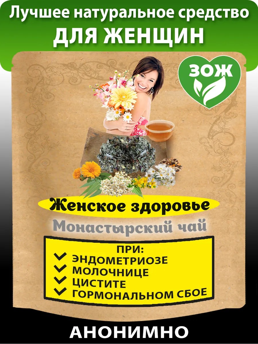 Травяной сбор, разработанный специально для женщин. Монастырский чай помогает справиться с такими женскими недугами, как: 1) молочница 2) миома 3) эндометриоз 4) мастопатия 5) маточные кровотечения 6) нарушение менструального цикла 7) гормональный сбой 8) цистит 9) раздражительность 10) головная боль 11) чай для женщин при климаксе. Лекарства от женских болезней, таблетки от молочницы для женщин, гормональные средства и аптечные препараты от эндометриоза, миомы и тд. не все хотят принимать, потому что от них много побочных эффектов.