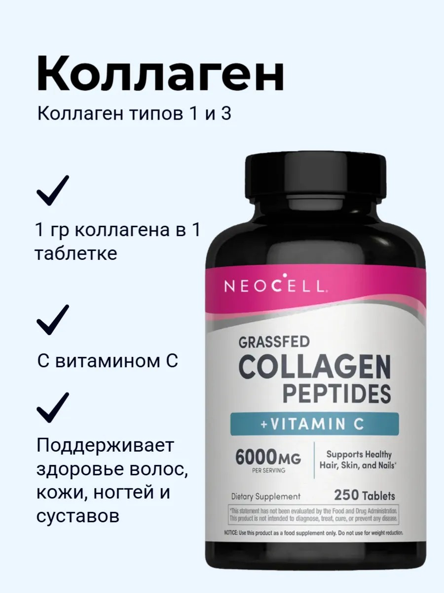 Коллаген составляет 25% белка вашего организма, поддерживая все, от кожи, волос и ногтей до суставов. Но ваше тело зарабатывает меньше, начиная с 20 лет. Коллаген NeoCell + витамин C обеспечивают заряд энергии для вашего тела, поддерживая сияние и здоровье кожи, волос и ногтей, помогая вам чувствовать себя и выглядеть на высоте в любом возрасте.