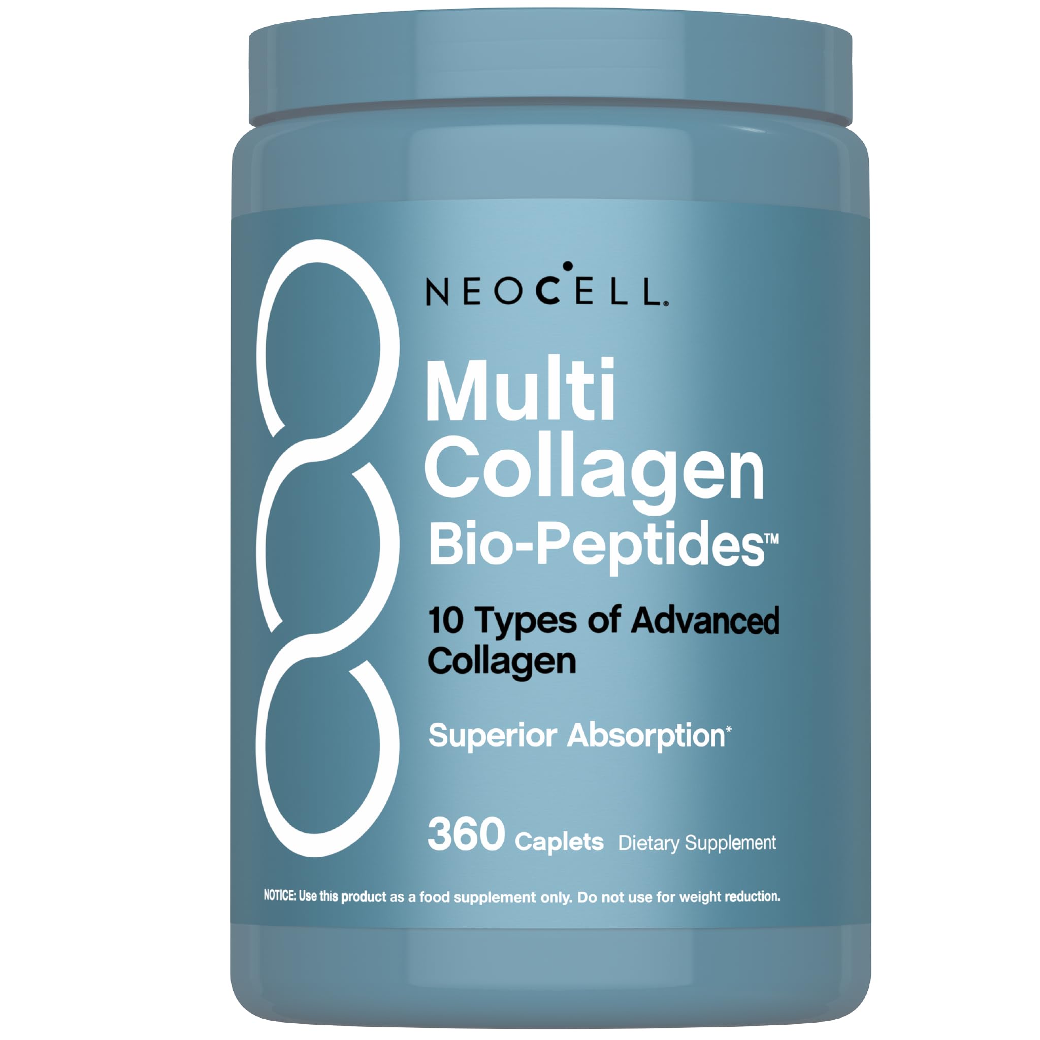 Multi Collagen Bio-Peptides Reveal your inner glow with NeoCell Multi Collagen caplets. Each serving delivers 10 types of beautifying collagen in the convenience of one formula. Designed for enhanced benefits, you can support healthy hair, skin, and nails each day. 360 Caplets These easy-to-take caplets are perfect for those who are always on-the-go. With 10 types of collagen in each serving, these caplets make it simple to receive a comprehensive approach to your beauty routine. Plus, this quantity of 360 caplets will last you nearly four months! NeoCell For nearly 30 years, NeoCell has been a trusted leader in unlocking the transformative benefits of collagen and essential nutrients. Trusted by millions, our products are based in science and designed to illuminate your inner beauty in a way that stands the test of time. These statements have not been evaluated by the Food and Drug Administration. This product is not intended to diagnose, treat, cure, or prevent any disease. Compared to non-enzymatically treated gelatinConvenient Daily Use: Just three caplets a day is all it takes to incorporate this powerful supplement into your routine. Compared to non-enzymatically treated gelatin. This statement has not been evaluated by the Food and Drug Administration. This product is not intended to diagnose, treat, cure, or prevent any disease. Gluten Free: At NeoCell, quality ingredients are non-negotiable. Gluten-free, wheat-free, soy-free, and lactose-free. Superior Absorption : These collagen peptides are enzymatically treated for superior absorption. . Powerful Collagen: With every serving, you're giving your body 3,000 mg of Multi Collagen Bio-Peptides to support hair, skin, and nails. . Advanced Complex: 10 types of advanced bioactive collagen, sourced from grass-fed bovine, fish, chicken, and eggshell membrane sources.