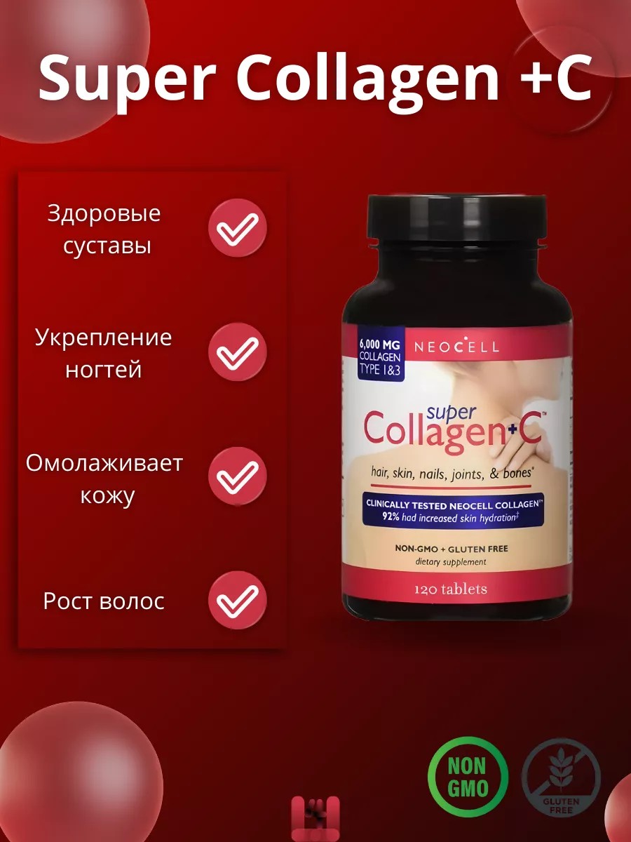 Коллаген – это очень важный и сложный структурный белок, который играет важную роль в сохранении прочности и гибкости во всем теле. По мере старения организма, регенирация коллагена снижается, что может привести к общим признакам старения кожи, волос, ногтей, мышц, сухожилий, связок и костей. Супер Коллаген содержит клинический изученный биологически активный коллаген NeoCell, который предназначен для поддержания нормального уровня коллагена в организме. При производстве коллагена, используя передовые технологические процессы гидролиза NeoCell, благодаря чему такой вид коллагена имеет наивысшую степень усвоения.