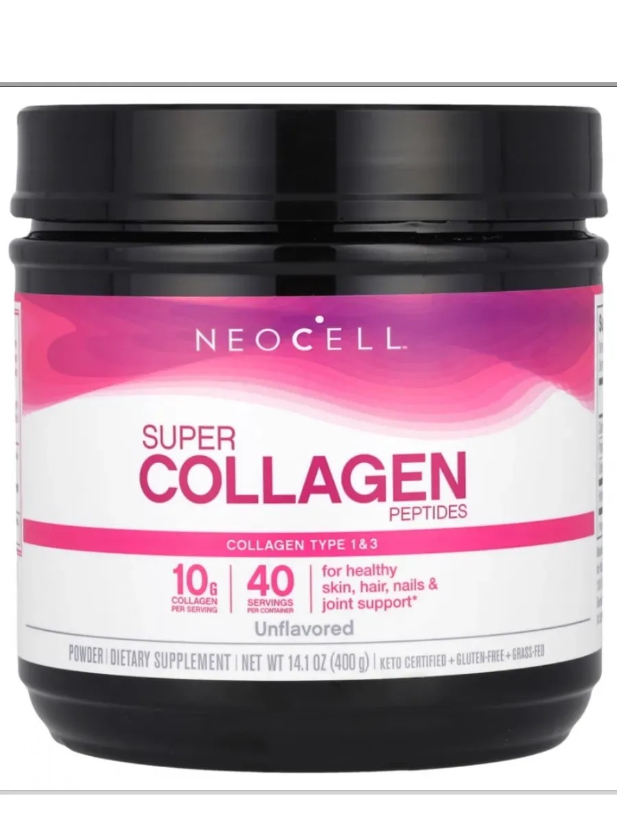 | Полное наименование товара | NeoCell, Super Collagen Peptides, Пептиды коллагена от животных травяного откорма, с нейтральным вкусом, 200 г |