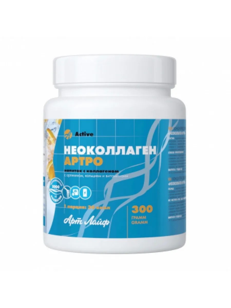 Neocollagen Arthro is a unique drink based on highly purified hydrolyzed collagen. The product helps replenish collagen deficiency and stimulates the synthesis of collagen, one of the main proteins of connective tissue, providing strength and elasticity to all human organs. It has a pleasant taste and neutral odor, and dissolves perfectly in cold and warm water. Ingredients: Collagen hydrolysate, fructose, calcium lactate (calcium), L-arginine, citrus fiber, maltodextrin, natural-identical flavoring, citric acid, rosehip extract, vitamin C (ascorbic acid), sucralose, vitamin E (tocopherol acetate), vitamin B2 (riboflavin), vitamin D (cholecalciferol). 1 serving (29.5 calories) contains 5000 mg of collagen hydrolysate. Main properties: Promotes the restoration and strengthening of connective tissue after injuries, intense physical activity, and sports. Suitable for the prevention of age-related changes in the musculoskeletal system. Low in calories. Can be used by those monitoring their weight. Maintains beautiful and youthful skin. Hydrolyzed collagen is a form of collagen that is completely ready for absorption. During enzymatic hydrolysis of collagen, its molecule is broken down into fractions, which facilitates the absorption of the substance in the gastrointestinal tract. Hydrolyzed collagen contains a complete set of all essential amino acids and serves as a material for the synthesis of the body's own collagen. L-arginine is a conditionally essential amino acid, a deficiency of which in the body can lead to a slowdown in recovery processes. Stimulates the synthesis of growth hormone, which helps preserve muscle tissue, increase muscle activity and endurance. Vitamins C, E, and rosehip extract have an antioxidant effect, promoting better absorption of collagen hydrolysate. Vitamin B2 is involved in metabolic processes, accelerating the healing of damaged tissue. Vitamin D regulates mineral metabolism and promotes calcium deposition in bone tissue and dentin, preventing loss of bone strength. Directions: Add 10 g of powder (2 teaspoons) to 200 ml of cold water while stirring vigorously. Stir thoroughly. Let stand for 5 minutes until the ingredients are completely dissolved. Consume immediately after preparation. It is best to use a shaker for preparation. Contraindications: Individual intolerance. Dosage form: 300 g.