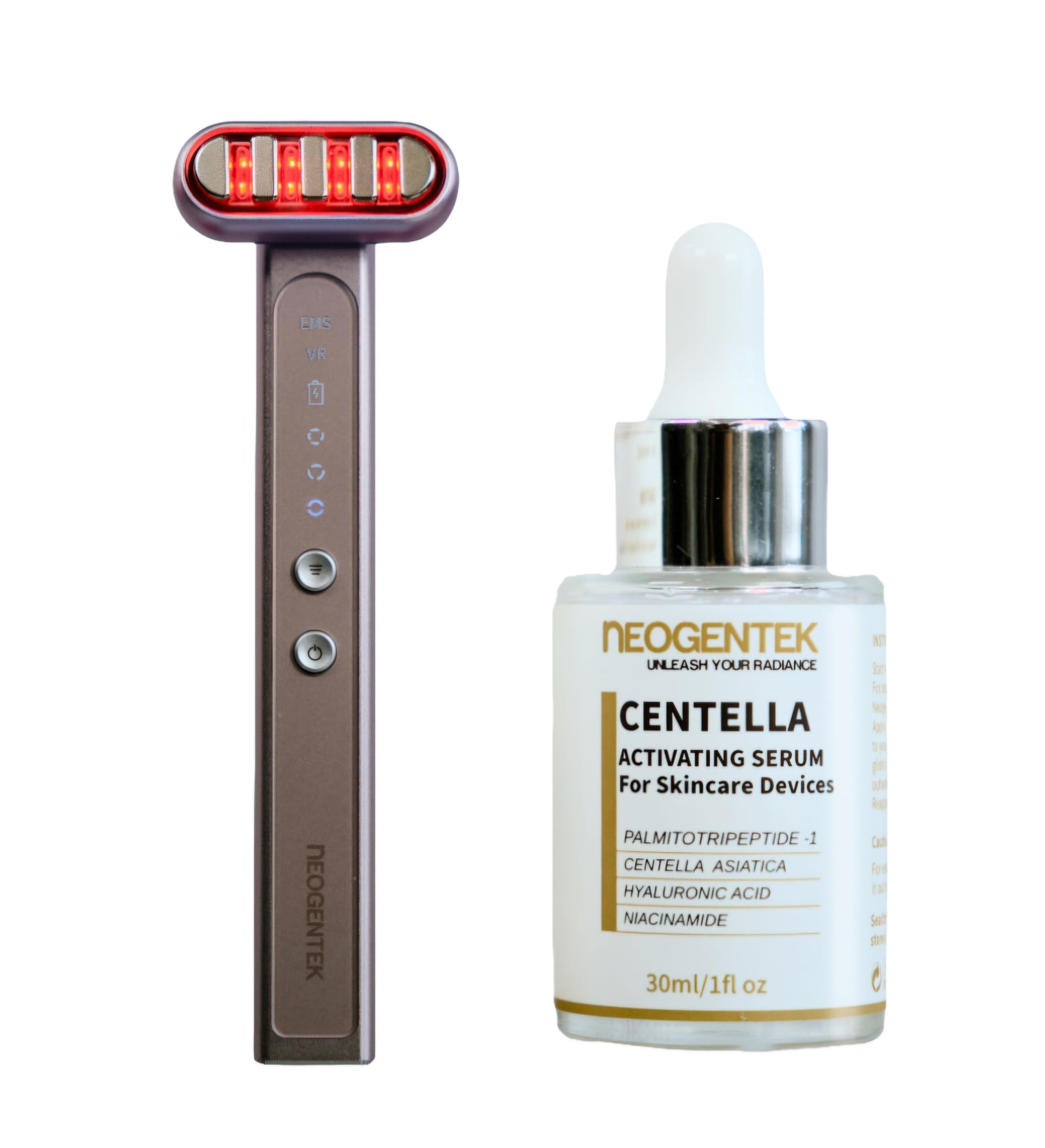 Neogentek 9-in-1 Beauty Facial Wand & Skin Therapy Serum Bundle | Light Therapy for Face and Neck | Skincare Wand & Massager | Anti-Aging Wrinkle | Microcurrent | Serum Made in Korea
