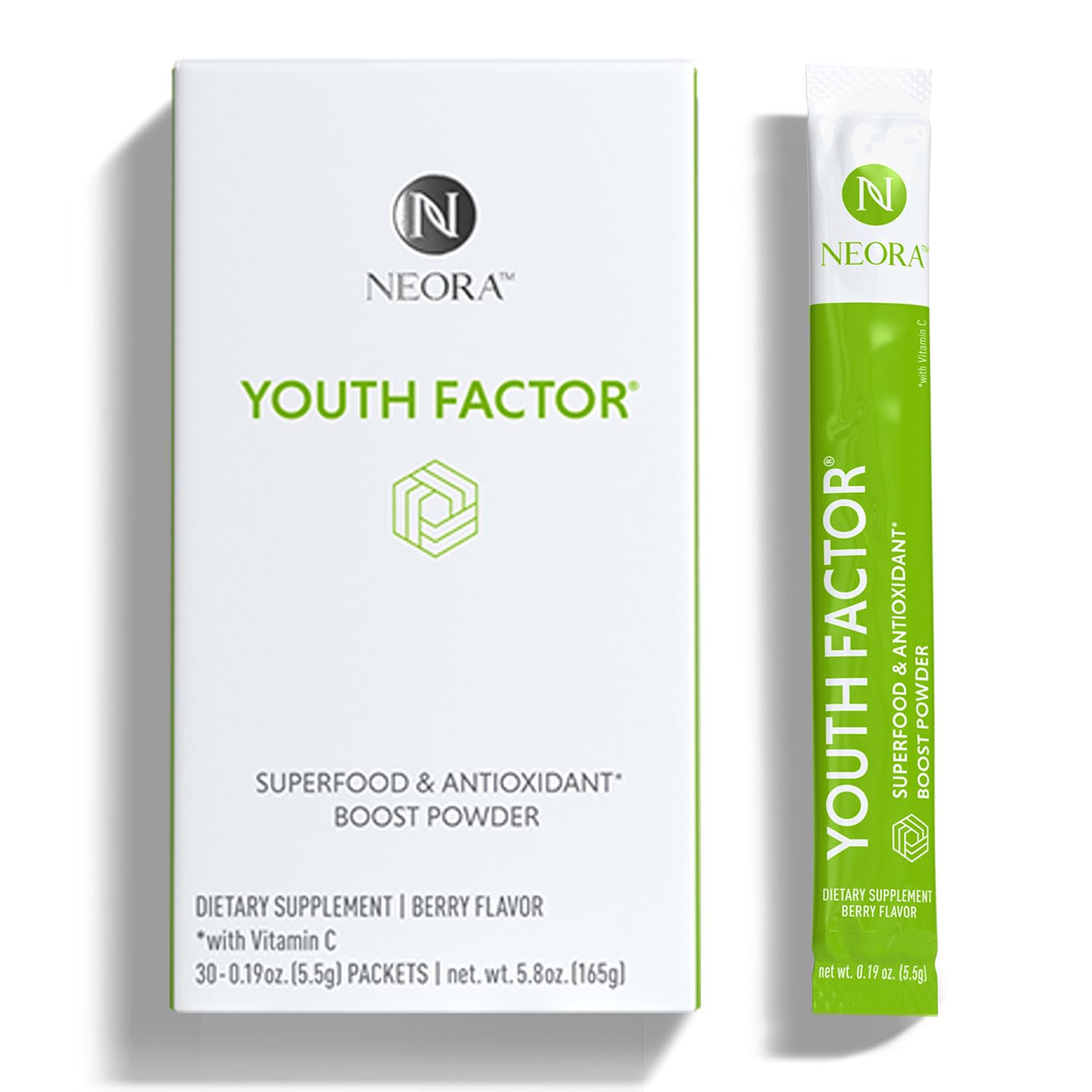 NEORA Youth Factor - Superfood Boost Powder - pH Balance Hair Skin Nails Support Fruits & Veggies Equivalent Nutrient Absorption - 30 Packets