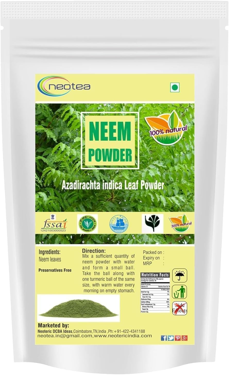 neotea Neem Leaves Powder | 100% Pure Azadirachta Indica Leaf Powder | Natural Herbal Powder for Skin & Hair | Non-GMO | No Preservatives or Additives | Chemical-Free & Vegan (100 GM(3.52 OZ))