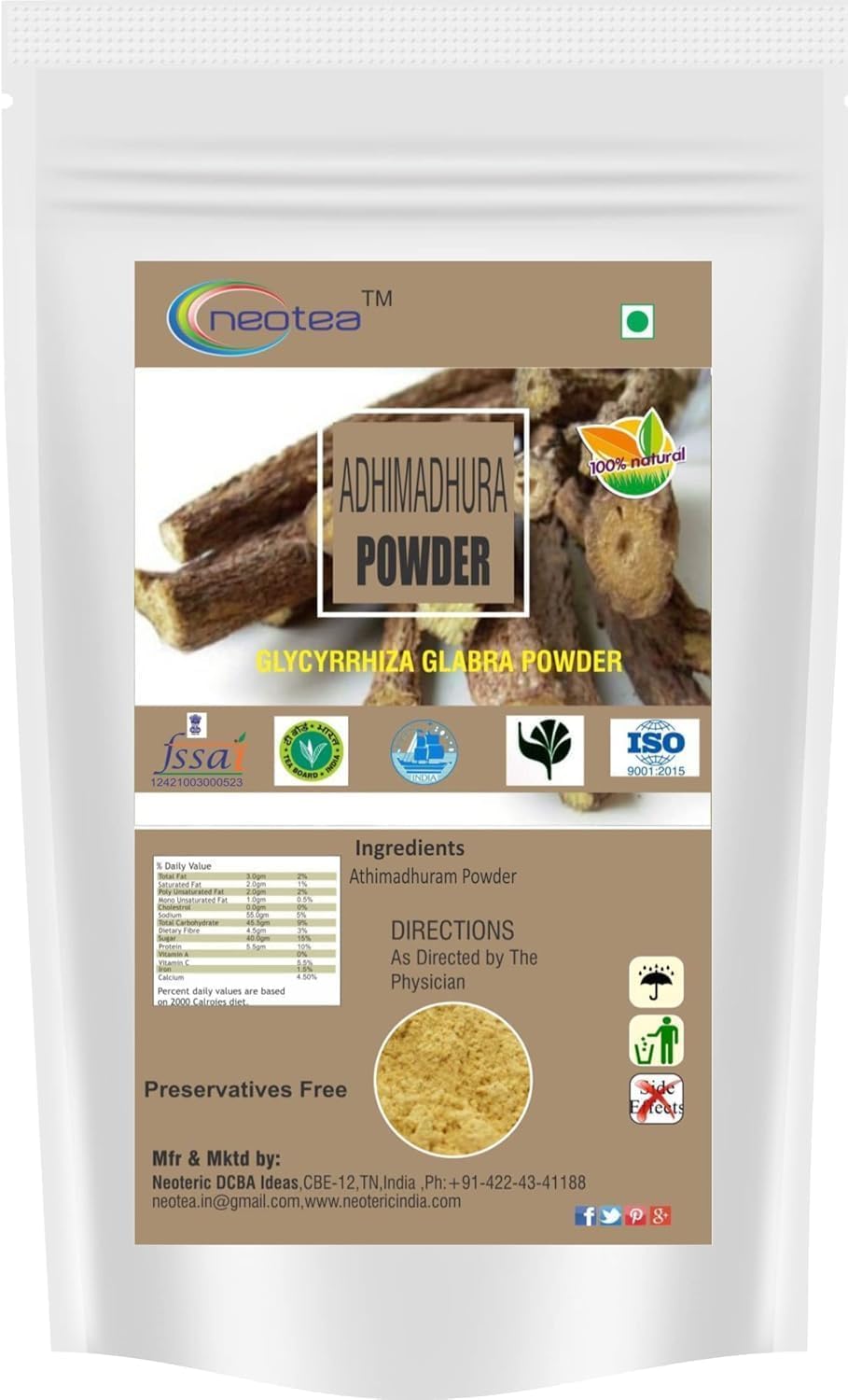 neotea Organics Licorice Root Powder | Glycyrrhiza Glabra | Mulethi | Yashtimadhu | 100% Pure & Natural | Non-GMO | Product of India (100 GM(3.52 OZ))