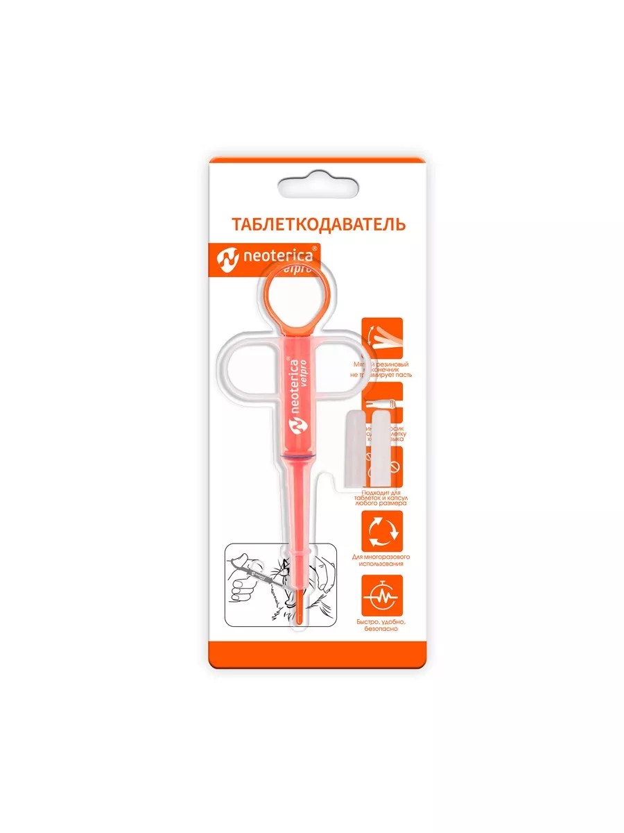 Таблеткодаватель Neoterica Vetpro обеспечивает безопасный и быстрый способ введения таблетки в период лечения домашних животных.Таблеткодаватель Neoterica Vetpro:- Мягкий резиновый наконечник не травмирует пасть, не снимается и не остается в пасти;- Длинный носик доводит таблетку до корня языка;- Подходит для таблеток и капсул любого размера;- Может использоваться для жидких форм;- 2 наконечника в комплекте;- Для многоразового использования.Таблеткодаватель подходит для животных любого размера.Таблеткодаватель Neoterica Vetpro – Быстро, удобно, безопасно! Незаменимый предмет в ветеринарной аптечке.