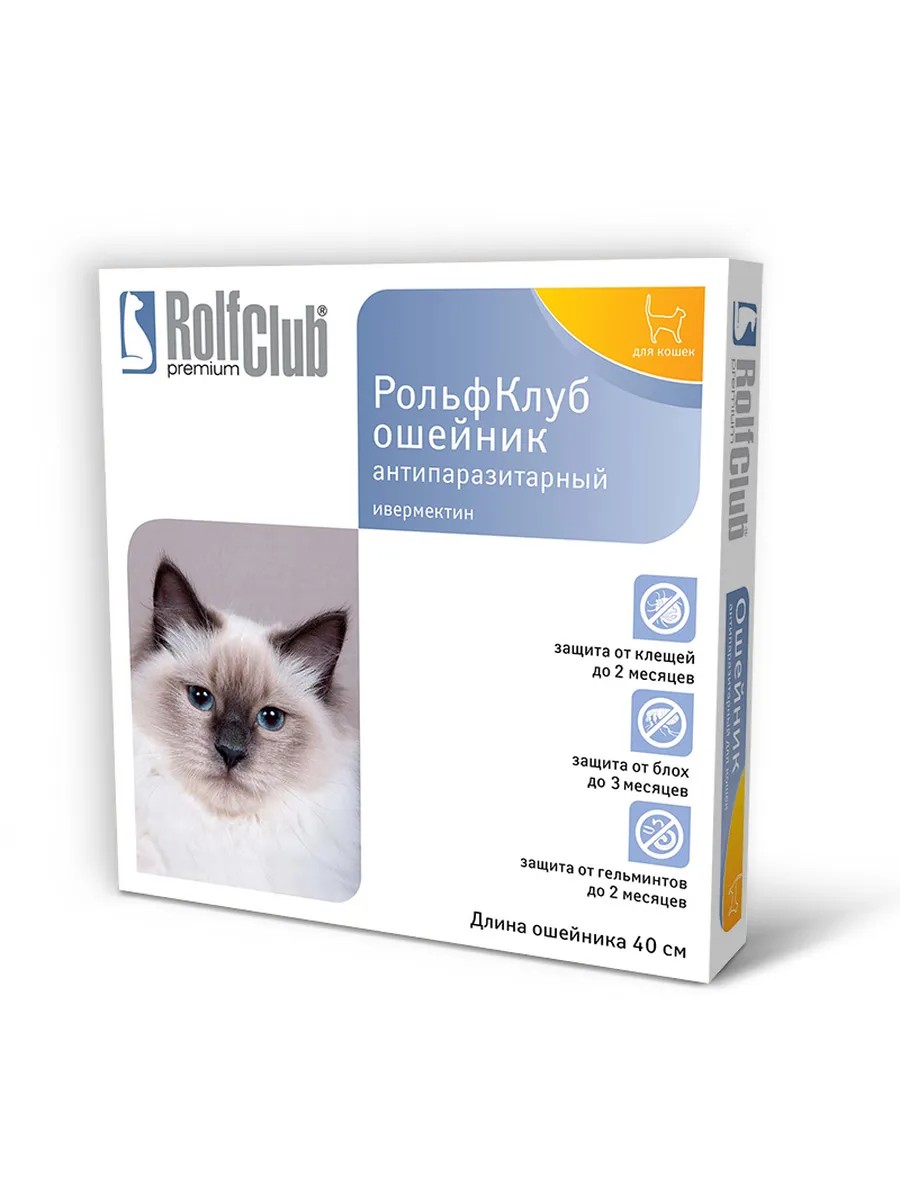 The RolfClub antiparasitic collar is used on cats to treat and prevent entomoses, otodectosis, and ixodid tick infestations, as well as to treat and prevent gastrointestinal nematodosis.