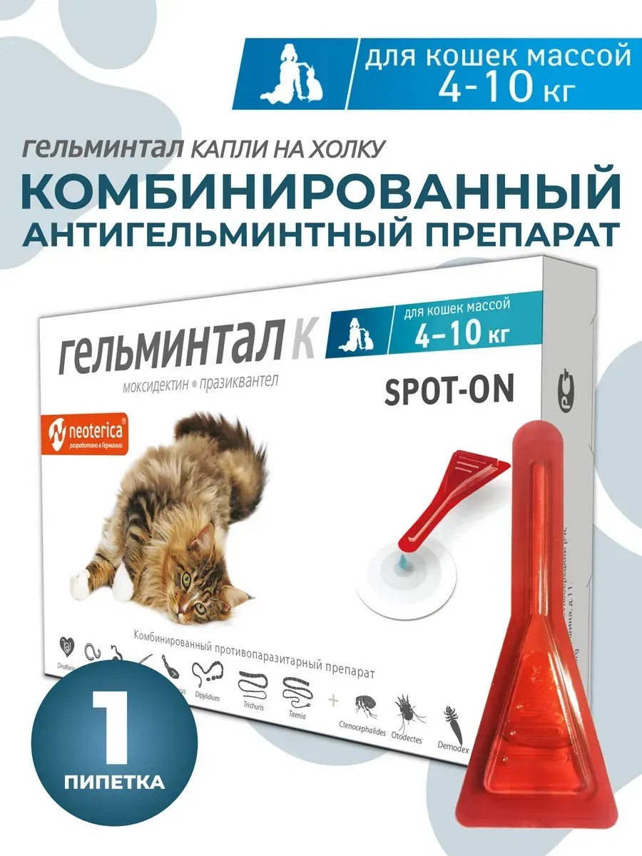 Neoterica Капли антигельминтные для кошек 4-10 кг 1 пипетка