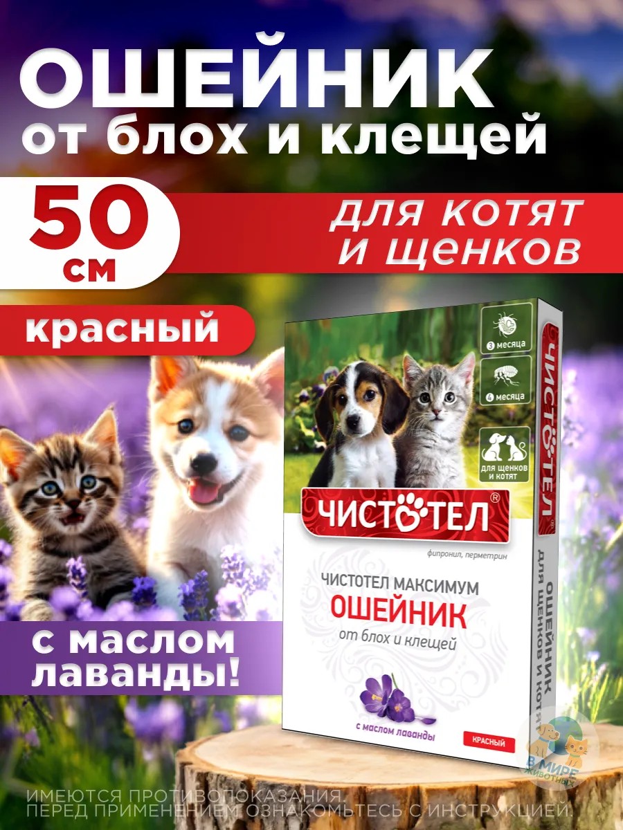 Ошейник «Чистотел Максимум» — идеальное решение для защиты ваших маленьких пушистых друзей от блох и клещей! Специально разработанный для щенков и котят, этот ошейник длиной 50 см обеспечит надёжную защиту благодаря активным компонентам фипронилу и перметрину. А аромат лаванды сделает ношение ошейника приятным для вашего любимца. Не упустите возможность подарить своему щенку или котёнку комфорт и спокойствие с ошейником «Чистотел Максимум»!