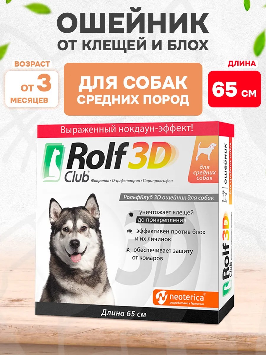 Rolf Club - 3D ошейник для собак применяют для лечения и профилактики арахноэнтомозов, вызываемых блохами, вшами, власоедами, иксодовыми клещами, защиты собак от нападения двукрылых кровососущих насекомых и профилактики трансмиссивных заболеваний (бабезиоз, боррелиоз, дирофиляриоз).