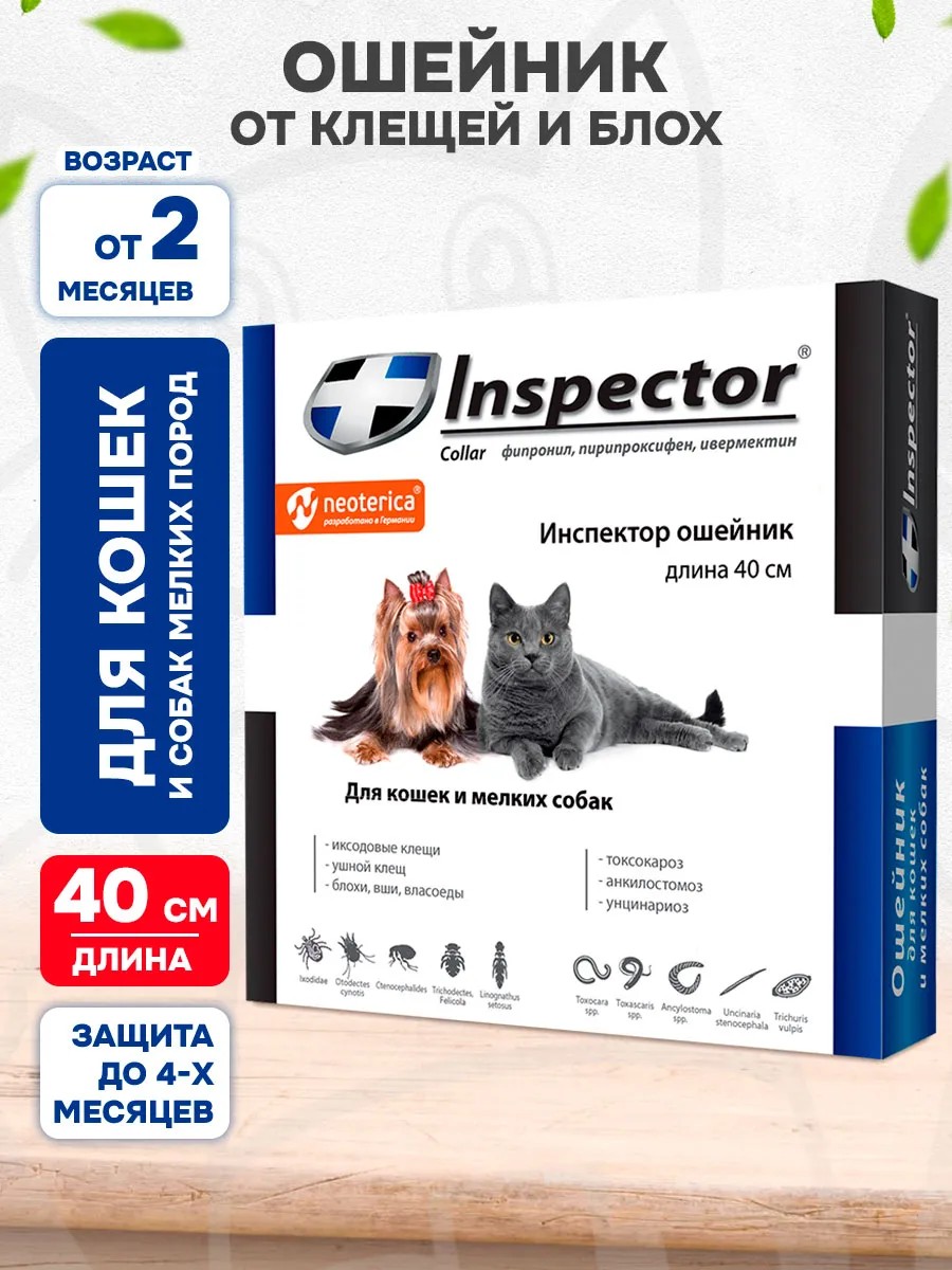 Inspector ошейник для собак маленьких пород и кошек против внутренних и внешних паразитов.