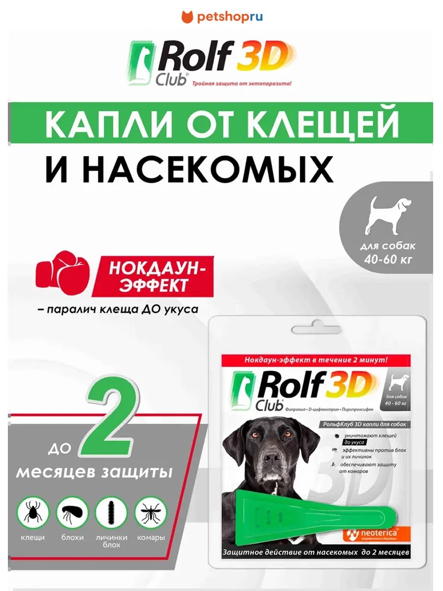 Многие ветеринарные препараты убивают клещей только после укуса. Это дополнительные риски для здоровья. Не рискуйте здоровьем питомца. Используйте препараты RolfClub 3D.