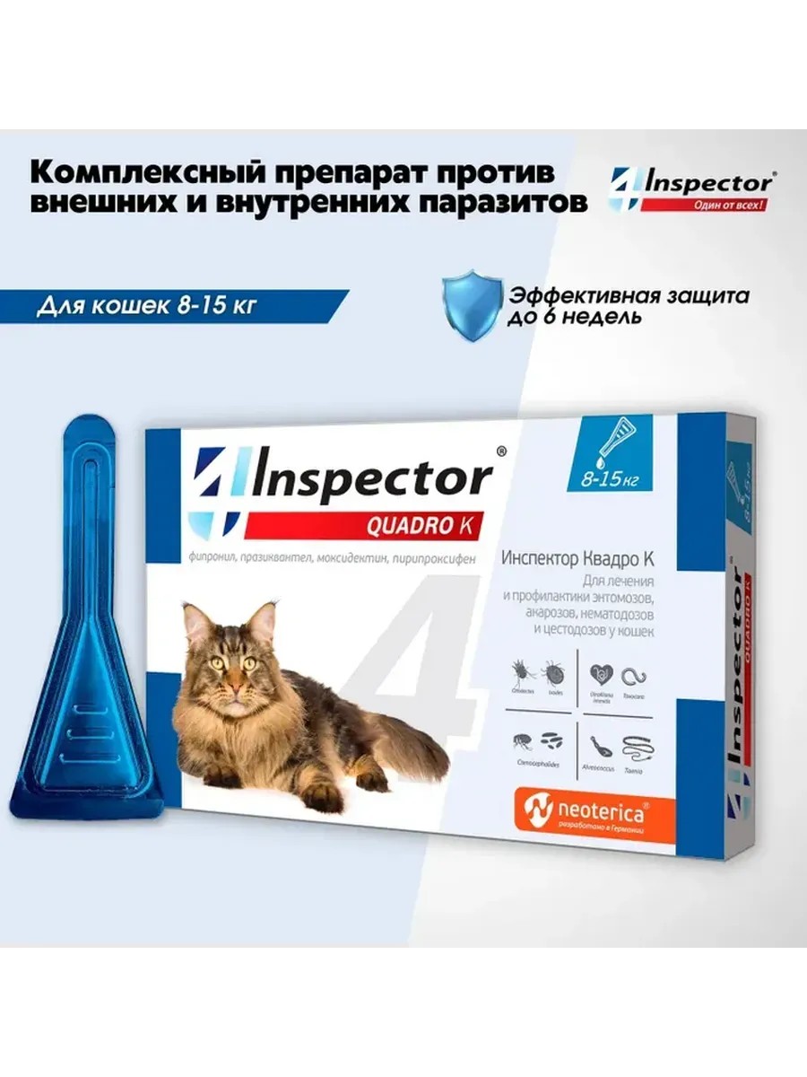 Neoterica Капли для кошек Inspector Quadro K 8 - 15 кг 1 мл, 1 пипетка