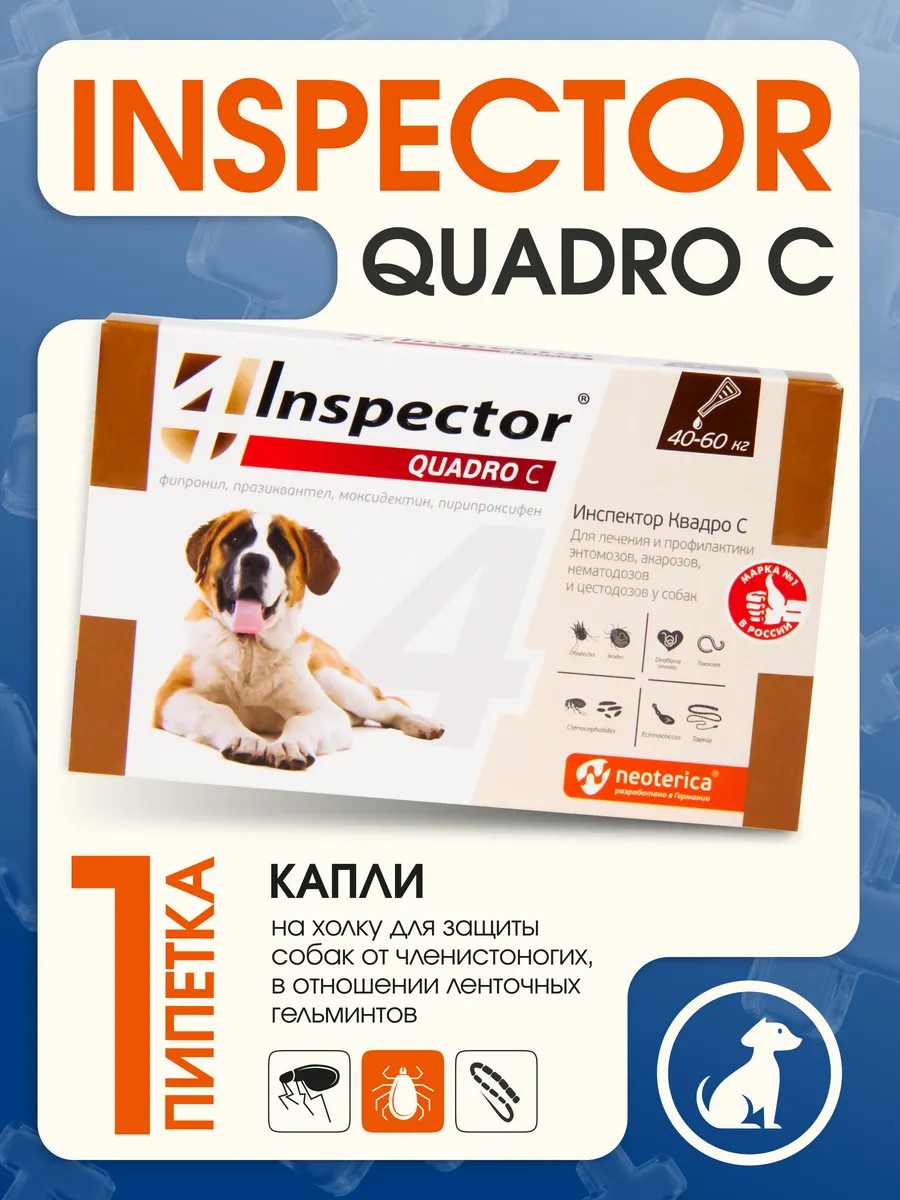 Капли на холку Инспектор Квадро C для собак 40-60 кг