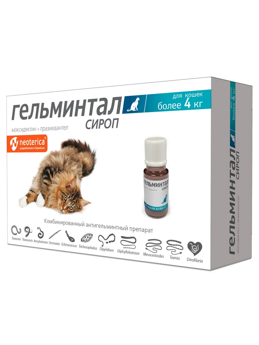 Neoterica Гельминтал сироп для кошек более 4 кг, от гельминтов, 5 мл