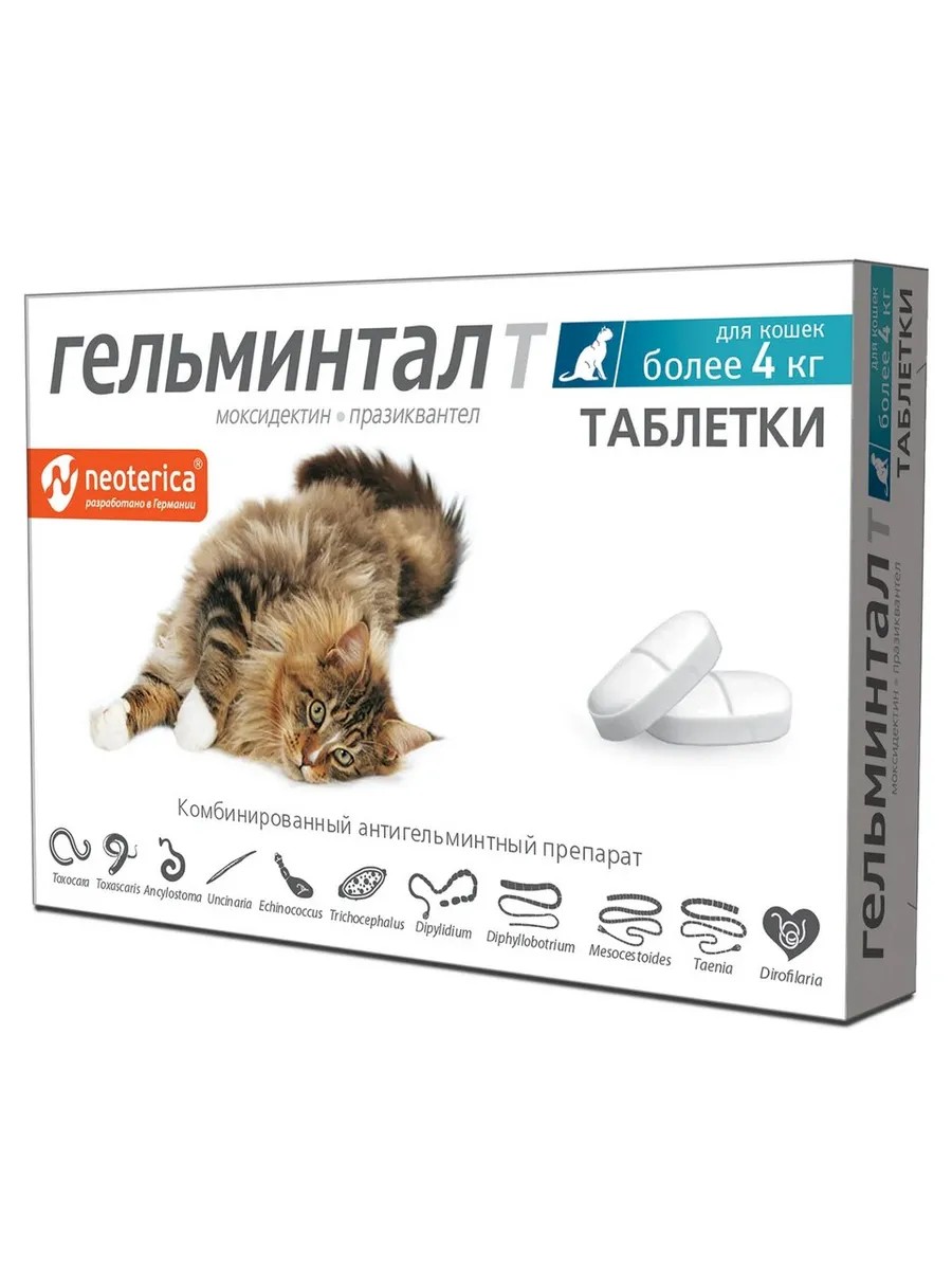 Таблетки от глистов Гельминтал для кошек более 4кг 2 шт