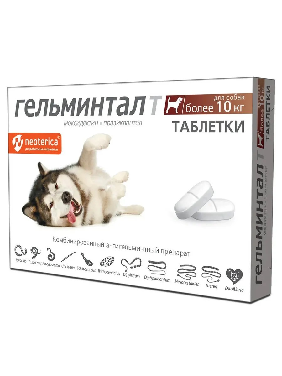 Таблетки от глистов Гельминтал для собак более 10кг 2 шт