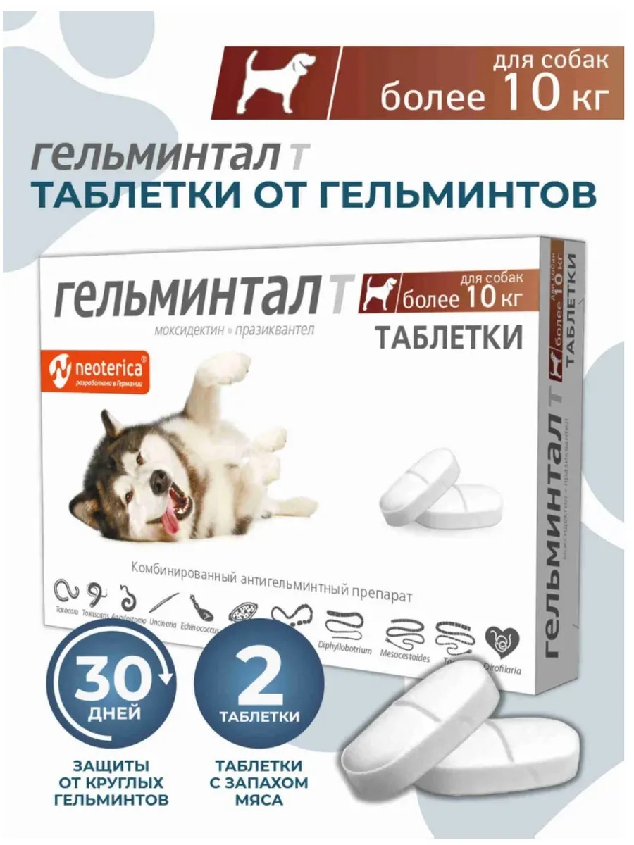Таблетки от гельминтов Гельминтал для собак более 10 кг 2 шт