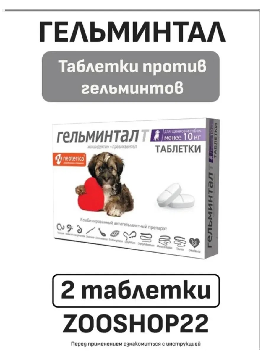 Neoterica Таблетки Гельминтал для щенков и собак менее 10 кг, 2 шт