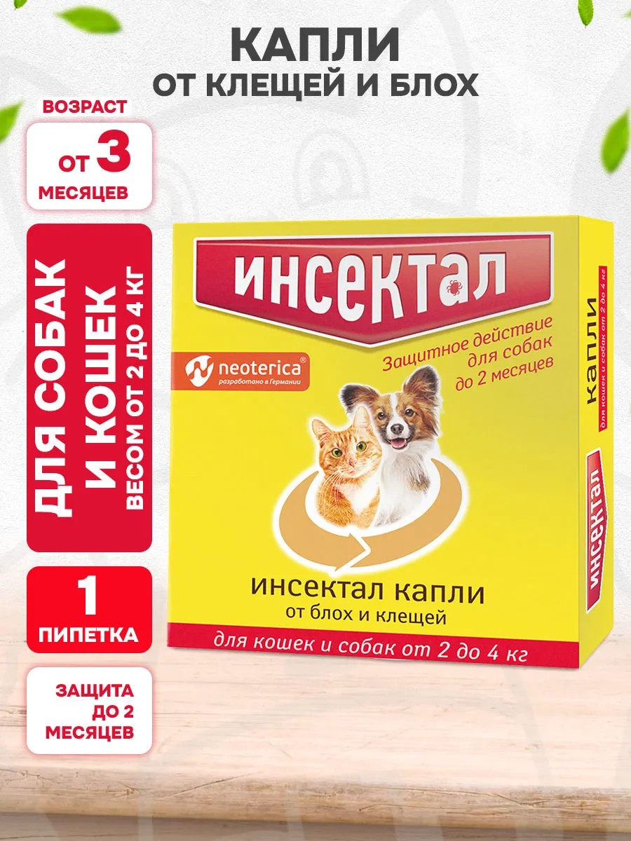 Insektal drops for adult cats and dogs weighing from 2 to 4 kg are developed using modern developments in world veterinary medicine, which made them highly effective and safe.